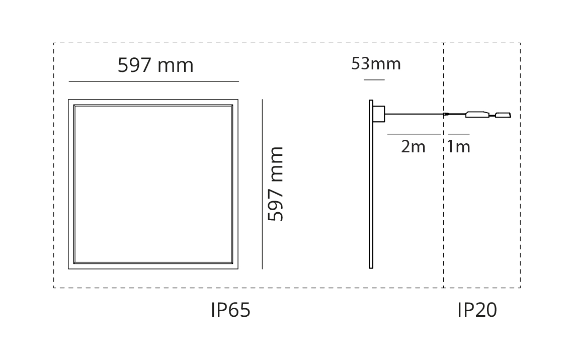 Sense IP65 Eco 3000K er en vanntett armatur med opalprismatisk front, som leveres komplett med fasedimbar driver. Lett og allsidig, bare 10 mm høy. Ideell for industrikjøkken, sykehus, laboratorier og produksjonsanlegg. Den gir lite blending med UGR<19 og har lang levetid. Sense IP65 Eco installeres enkelt i T-skinnetak, og har en glatt overflate i akryl gjør enheten lett å rengjøre. LED panelet er IP65 både forfra og bakfra. Den leveres med en driver som er IP20, men siden den har 1 m ledning fra driveren til panelet, kan driveren legges unna sonen hvor det kan komme vann ved rengjøring.