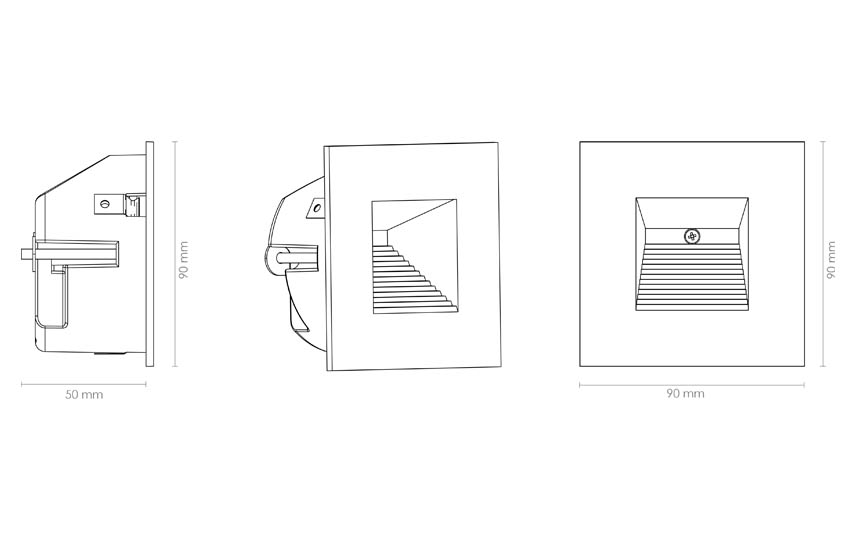 Veggspotlight til montering i lav høyde. Kun 3 mm innfellingsdybde. Godt egnet for lyssetting av trapper, eller som nattbelysning. Produsert i trykkstøpt aluminium med pulverlakkert hvit eller sort overflate. Våre IsoSafe-produkter kan monteres direkte i isolasjonen. Kommer med SG Armaturens nye koblingsboks med feste for K-rør.