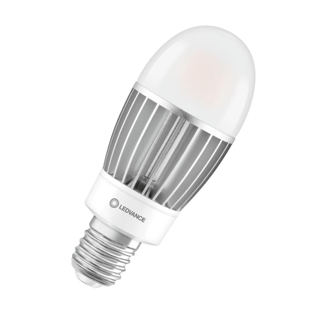 LEDVANCE LED HQL erstattning for krevende utendørs applikasjoner. Egnet for drift med konvensjonell forkobling (CCG) eller 230 V strømnett. Det anbefales å fjerne forkobling og koble direkte på nettspenning (AC) for mest stabil drift.