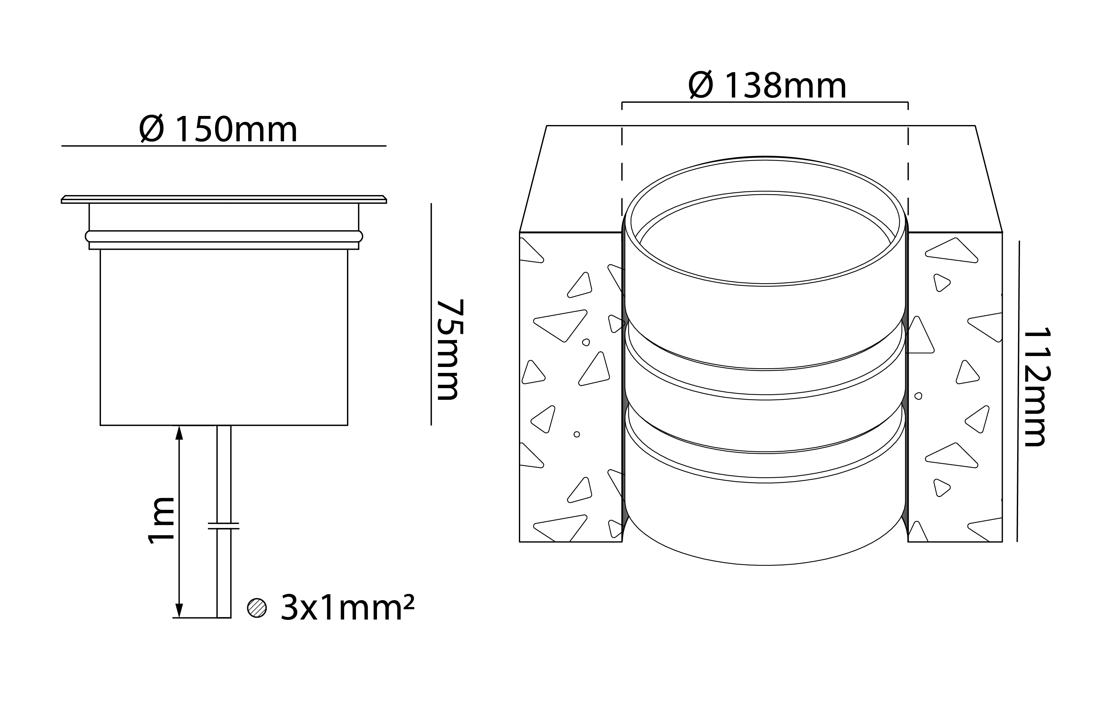 - Innfellingsdiameter: 138 mm