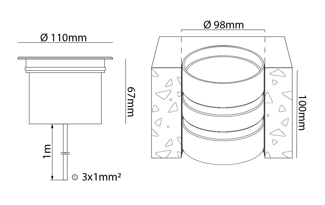 - Innfellingsdiameter: 98 mm