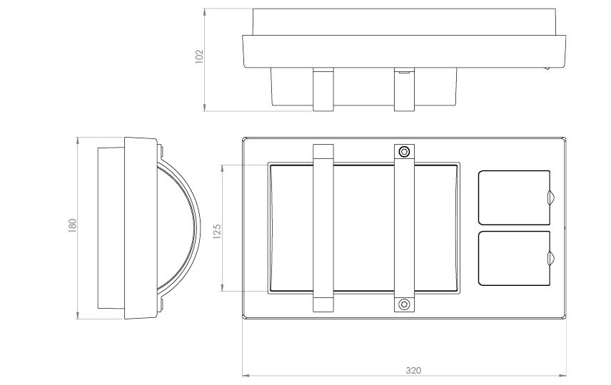 Robust veggarmatur med 2 stikkontakter (16A). Leveres komplett med LED som har lang levetid 50 000 (L70/B50). Armaturhus i aluminium og avskjerming i polykarbonat.