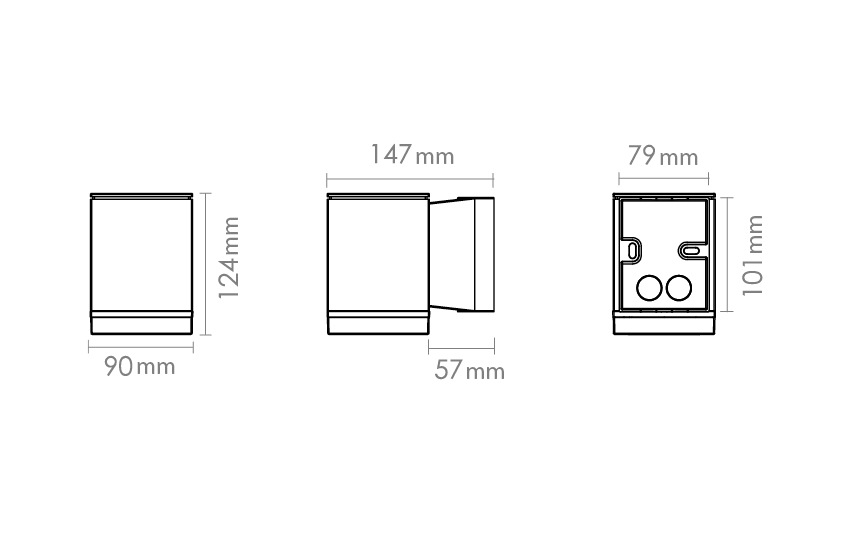 Fasadearmatur for vegg og hjørnemontasj. GU10 sokkel og leveres med ny generasjon 4,5W LED. 230V. IP54. Kl. II.