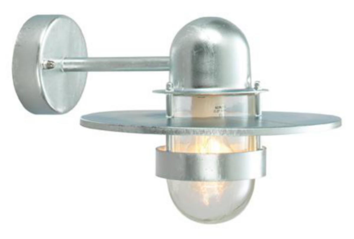 Vegglampe i moderne design med klart glass. Frostet eller glass i polykarbonat, samt hjørnefeste kan bestilles som tilbehør. Bergen leveres i galvanisert stål og sort. Bergen finnes også som taklampe.