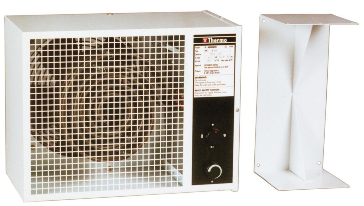 Varmluftapparat for fast montering godkjent av det Norske Veritas for bruk på skip. Leveres med veggbrakett, innebygget termostat og betjening.