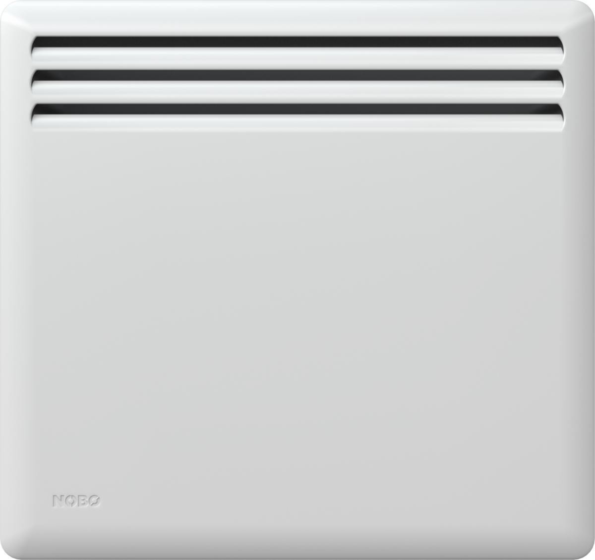 Nobø frontutslipp konvektorovn. Dobbeltisolert, IP 24. Farge RAL 9016. Slavemodell uten termostat. Kobles fast med medfølgende koblingsboks.