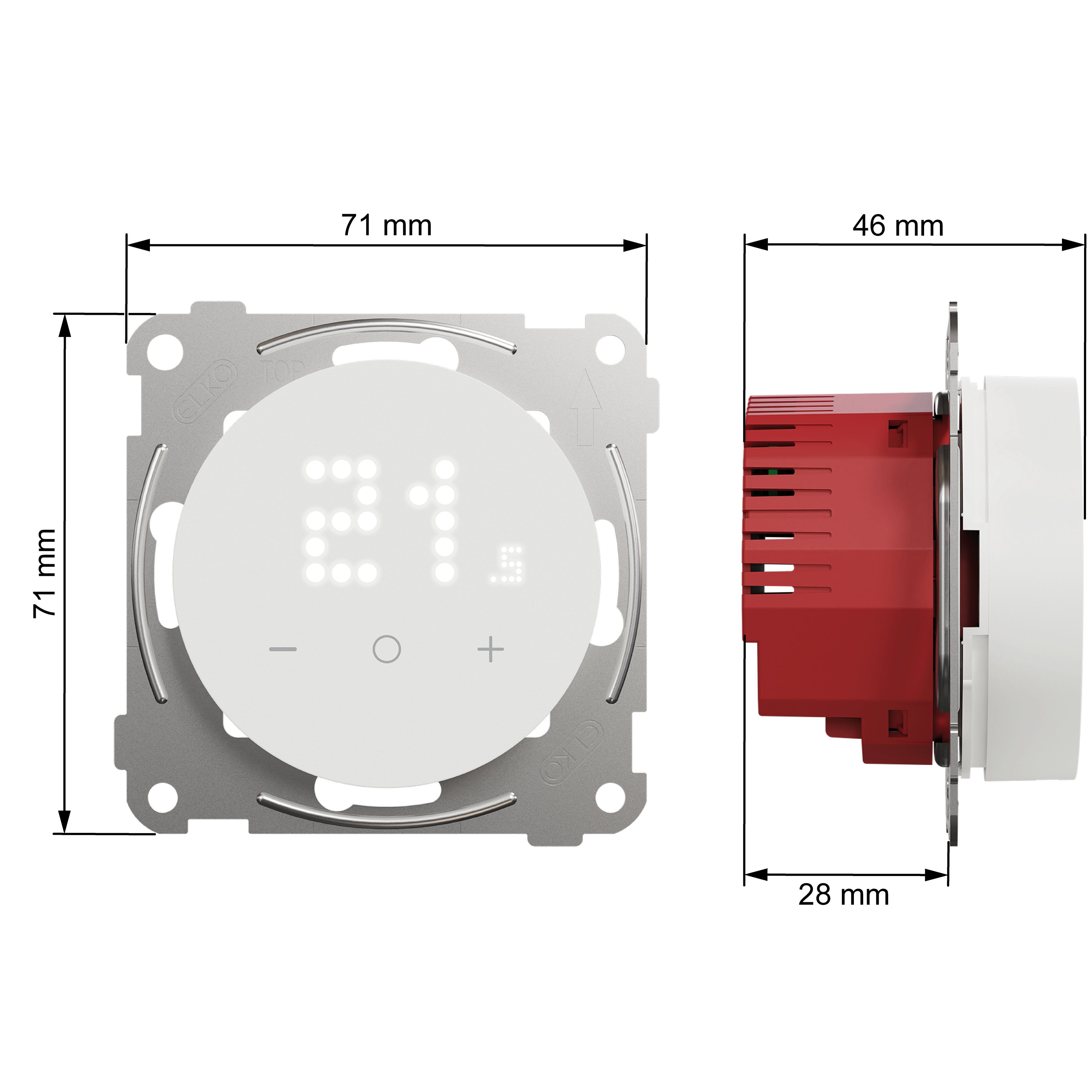 ELKO sin termostat med Matter fungerer utmerket alene og hvis ønskelig kan du legge den til i ELKO SMART sitt system uten at du er avhengig av Smart Hub. Termostaten takler belastning på opptil 3520W. Den kan i tillegg brukes til motoriserte ventiler eller sirkulasjonspumper for vannbasert varme (230V). Termostaten fungerer med flere gulvsensorer (10K Ohm, 12K Ohm, 15K Ohm, 33K Ohm & 47K Ohm). DOT-Matrix displayet til termostaten kan gå i hvilemodus når termostaten ikke blir berørt, noe som er veldig kjekt hvis du skal bruke termostaten på et soverom, feks, Dimming av DOT-Matrix displayet setter du opp i APPen. Termostaten kan også brukes som regulator, hvis nødvendig. Du kan velge mellom romføler, gulvføler, maksvokter eller regulator.