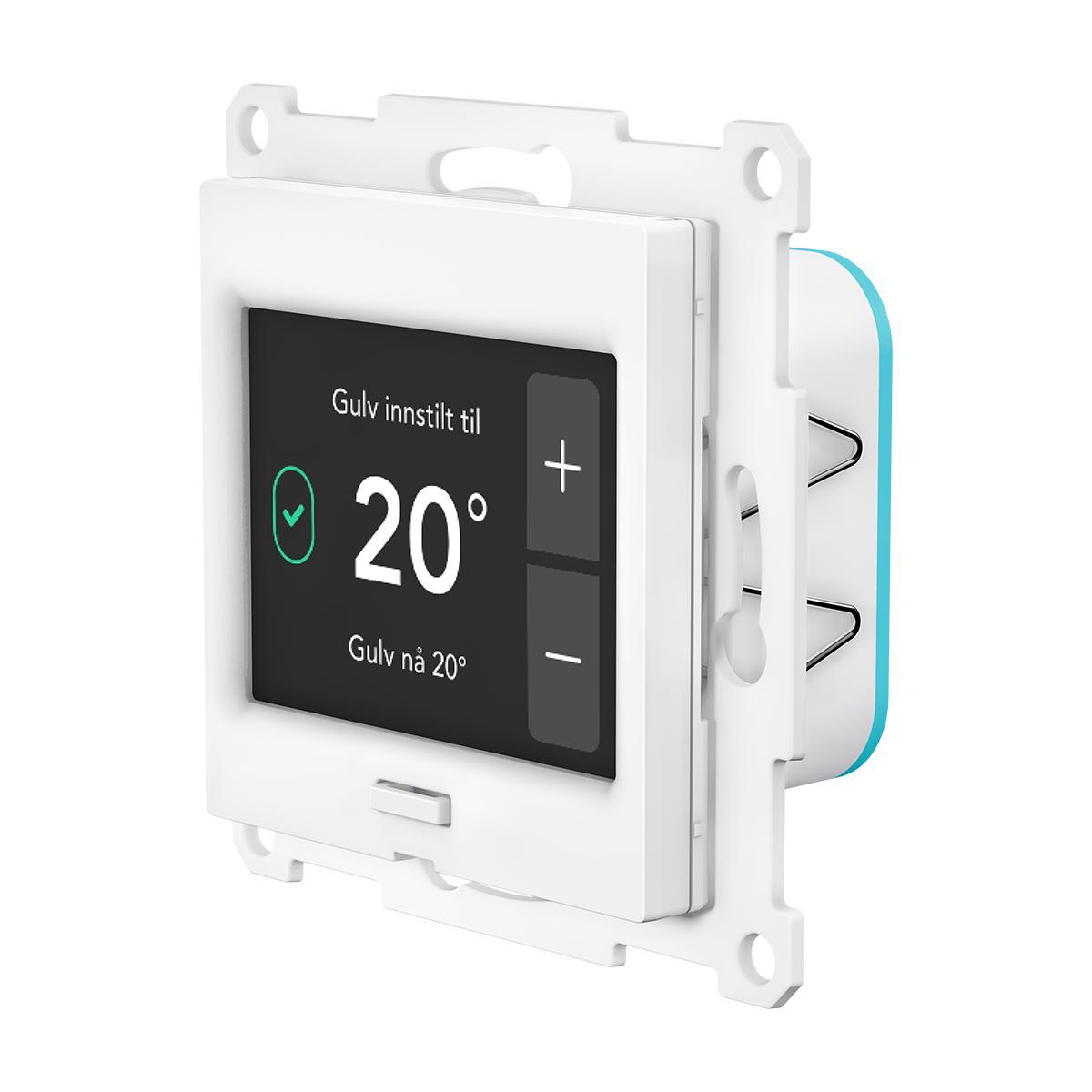 TRM-01 er en termostat for elektrisk gulvvarme med en skjerm for å styre og vise temperatur og varmemodus. Den kan tåle en last på inntil 16 A, har innebygd romføler og medfølgende gulvføler. Den kan også brukes med eksisterende gulvføler eller som regulator (PWM). TRM-01 kan automatiseres for energisparing, gjennom f.eks. dag- og nattsenking. Med Gateway (GWY-01, ikke inkludert) kan produktet fjernstyres og optimaliseres opp mot strømpris. AW – Passer med matthvit ramme SG® Install.