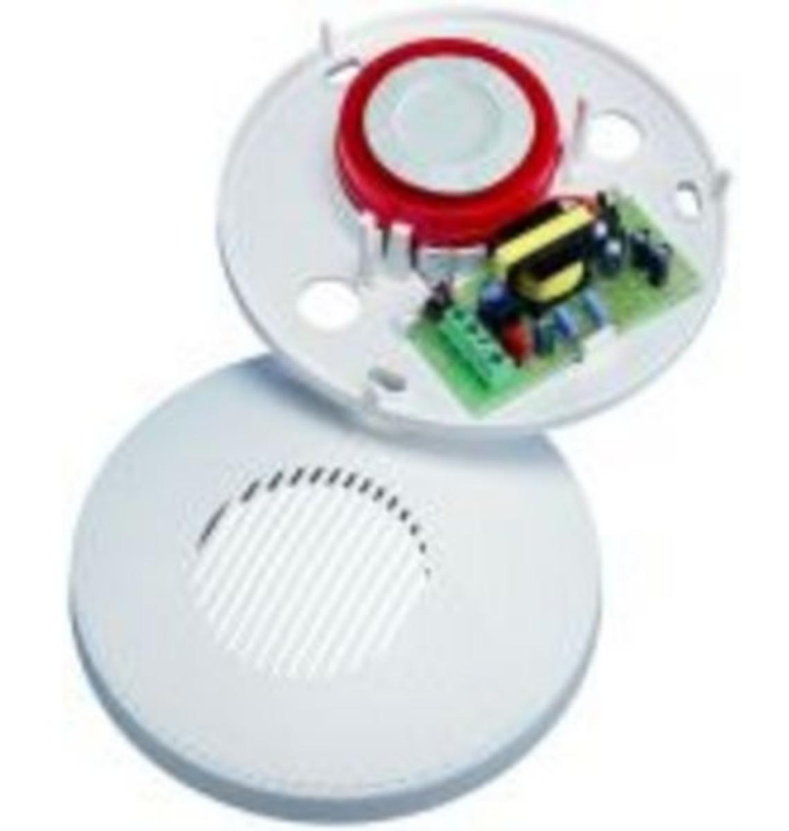 Sirene for innendørs monteringdriftsspenning 12VDC, 20 - 80mA, lydstyrken kan justeres fra 90 - 113 dB, sabotasjesikret for åpning og nedrivning fra vegg, størrelse 100(l) x 135(b) x 35(h) mm, hvit farge, temperaturområde -5 - +50 grader celsius Innendørs sirene med sabotasjebeskyttelse12VDC driftsspenning 60mA maks. Mer enn 120dB lydstyrke. Fra -35 - 60 grader celsius driftsområde. Størrelse 130x130x30mm
