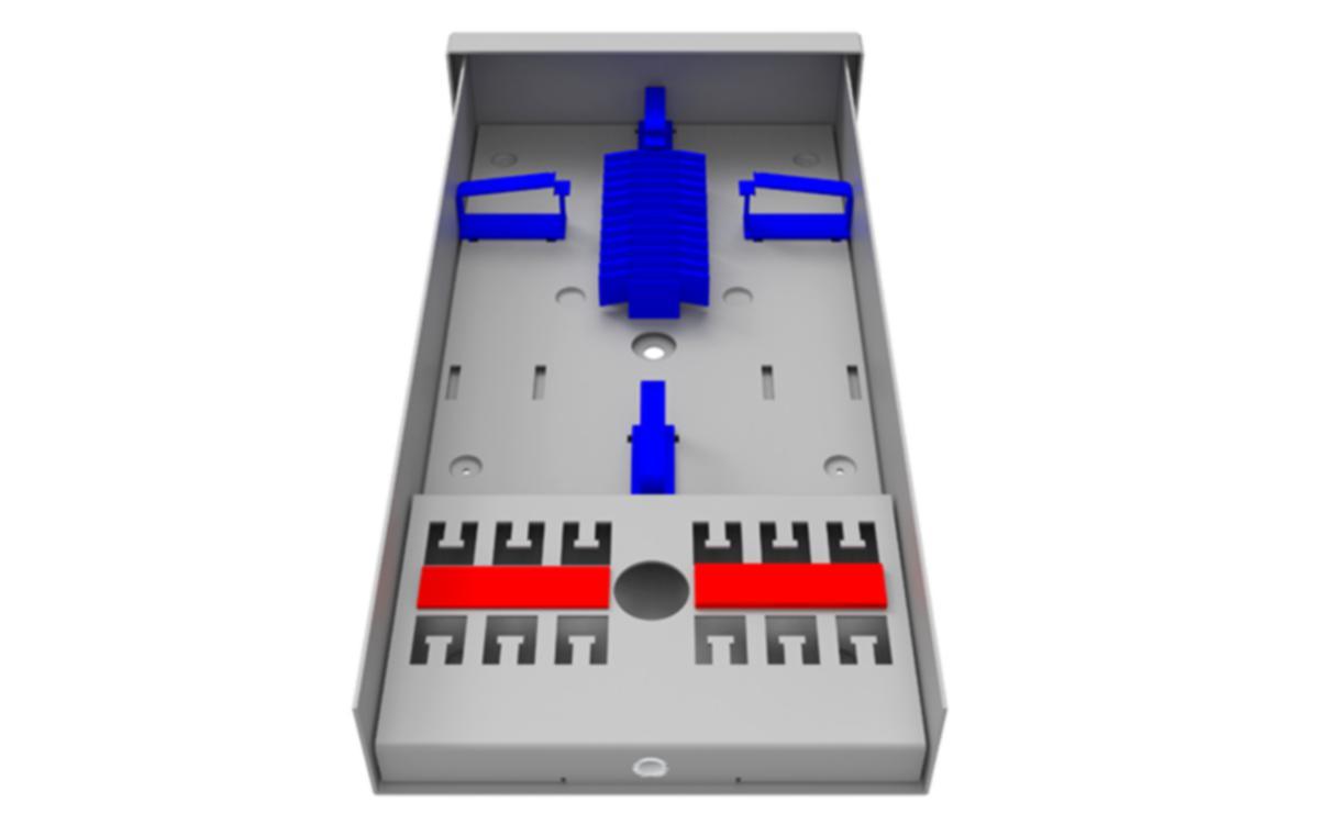 Veggboks for skjøting av fiber,tar liten plass kan avlåses, meget solid utførelse, ofte brukt i FTTH applikasjoner.