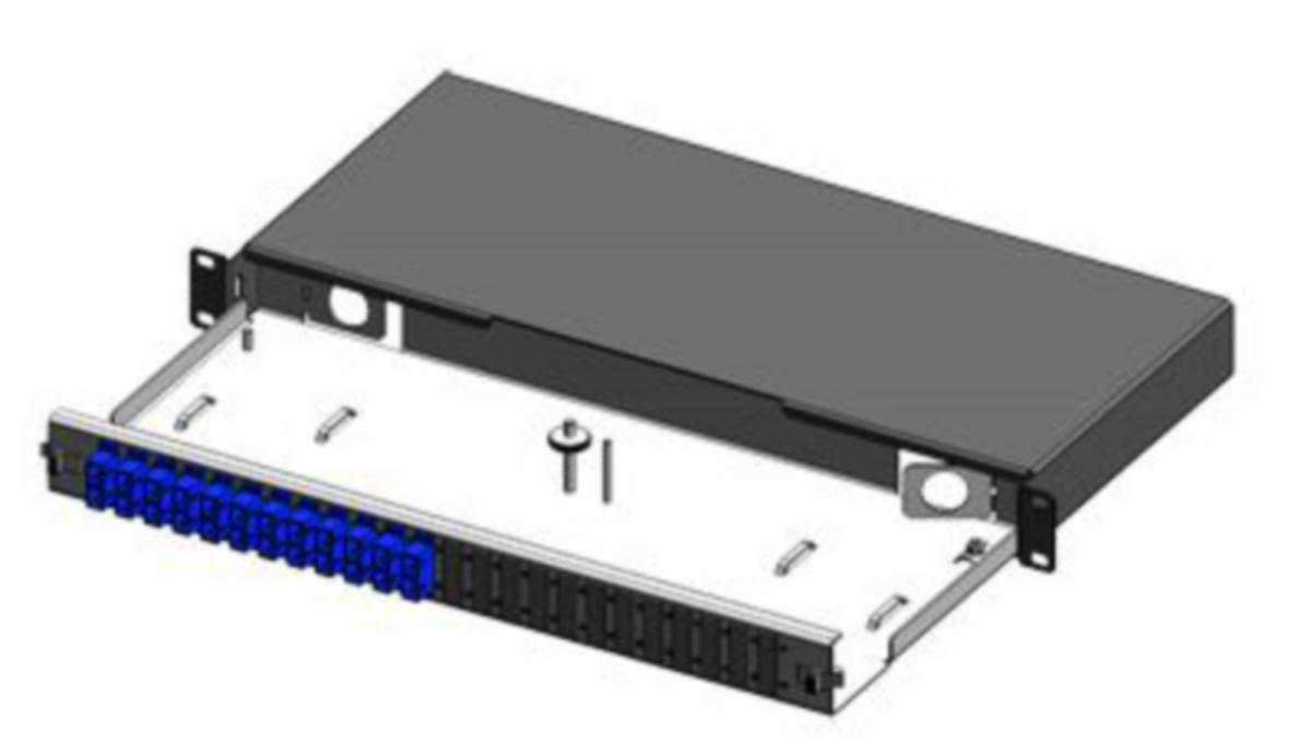 ODF 19" 1U 24F 12xSCD/UPC adp SM Uttrekkbar Sort 210mm dyp