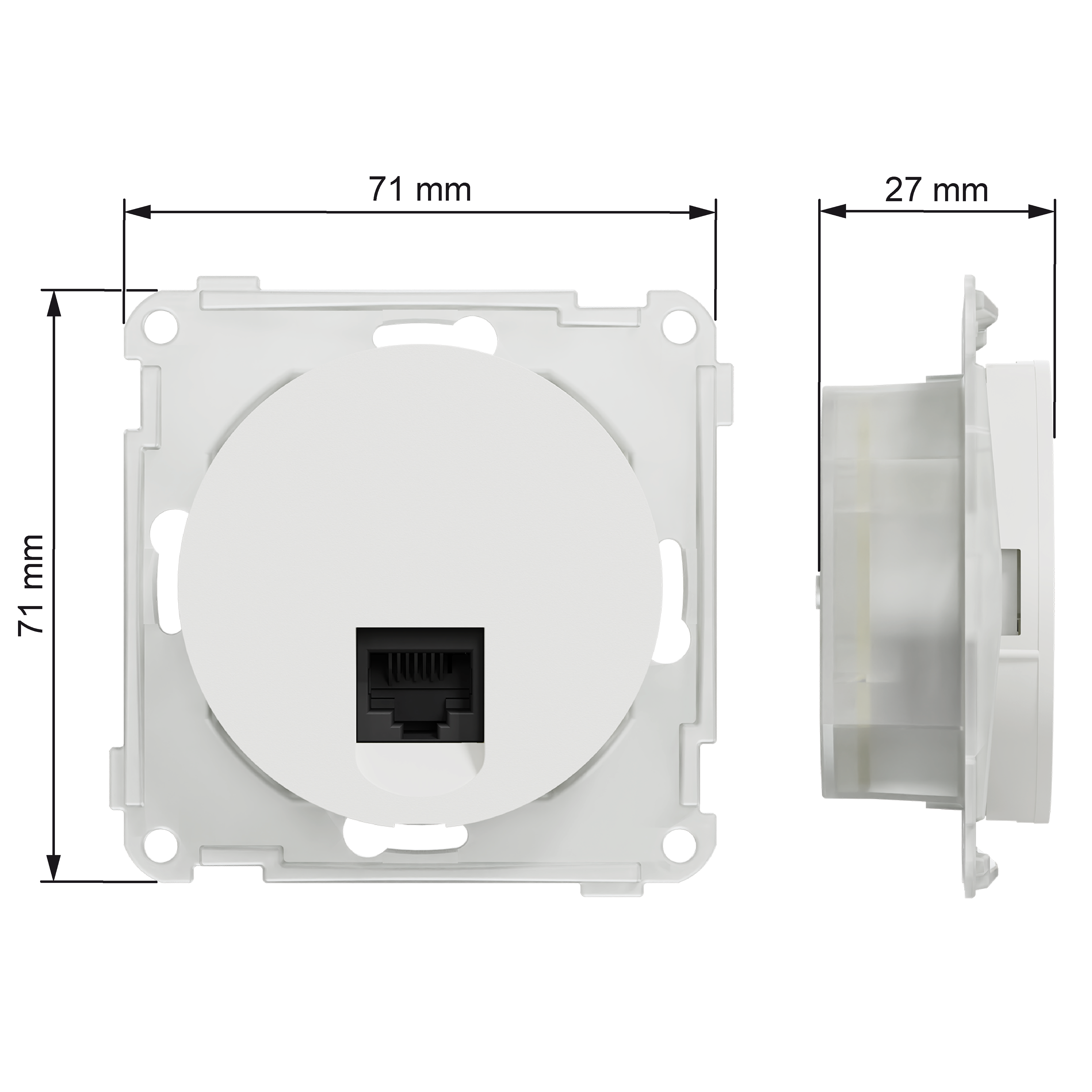 ELKO One - modularuttak 1x8 kat 6 UTP for LSA terminering, renhvit / Modularuttak i ELKO One design med ett uttak i kat. 6 UTP utførelse. De er enkle å installere og passer fint inn i en bolig eller i et kontormiljø. Tilkobling med LSA terminering med fargekode for T568A/B kobling.