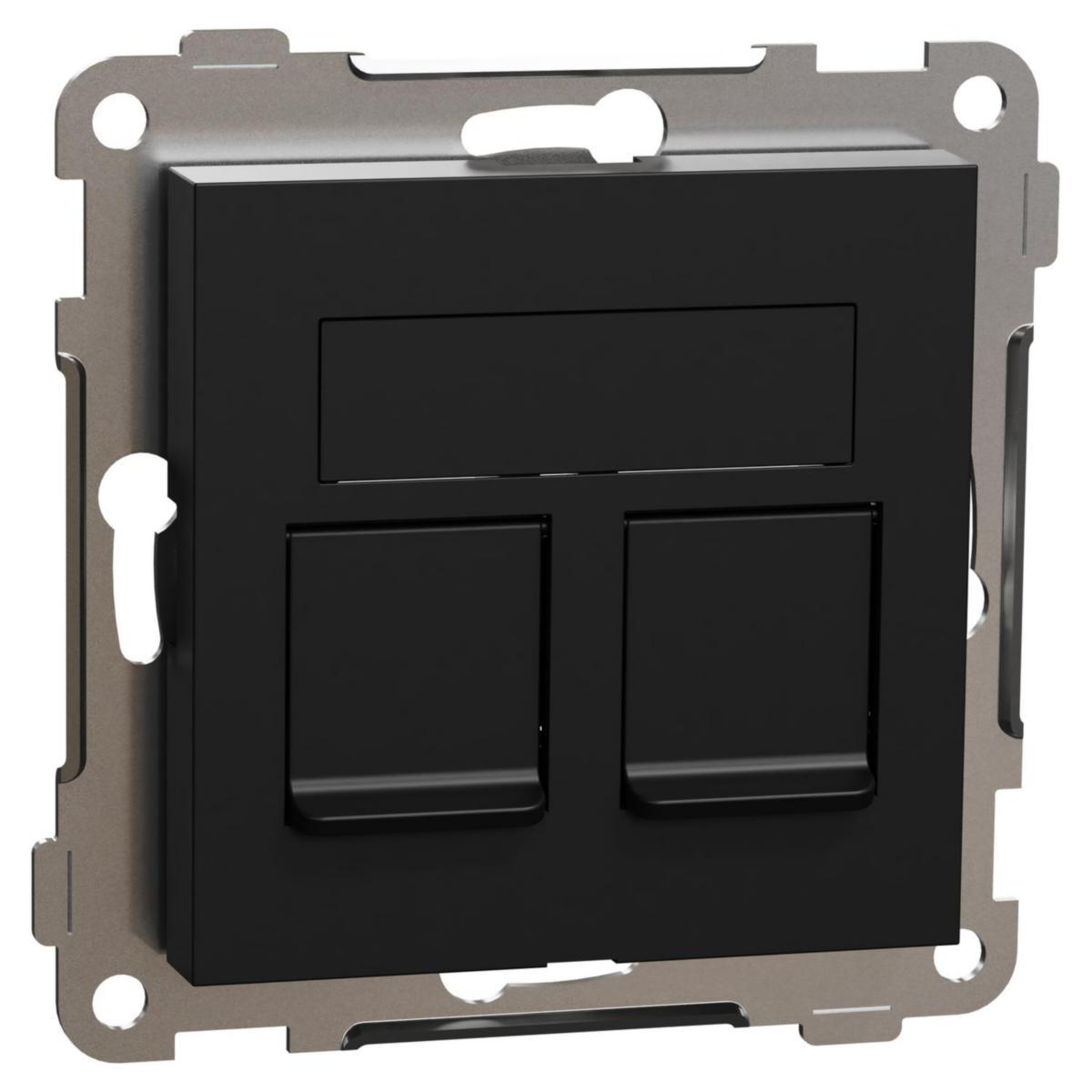 ELKO Sentralplate rett, universal for 1 eller 2x Keystone eller S-One. Kontaktene sneppes direkte inn i festerammen, og den medfølgende 2-hulls sentralplaten sneppes på plass. Hullbilde og innfesting er tilpasset både Keystone og S-One konnektorer. Monteres i 1- til 5-hulls ramme, innfelt eller i høy påveggskappe eller hjørnekappe. Leveres med støvdeksel og vendbart merkeskilt. Mål på produktet er (B) 74,2 mm x (H) 74,2 mm x (D) 23,5 mm. Kompletteres med design ramme. Kapslingsklasse IP20. Farge: sort.