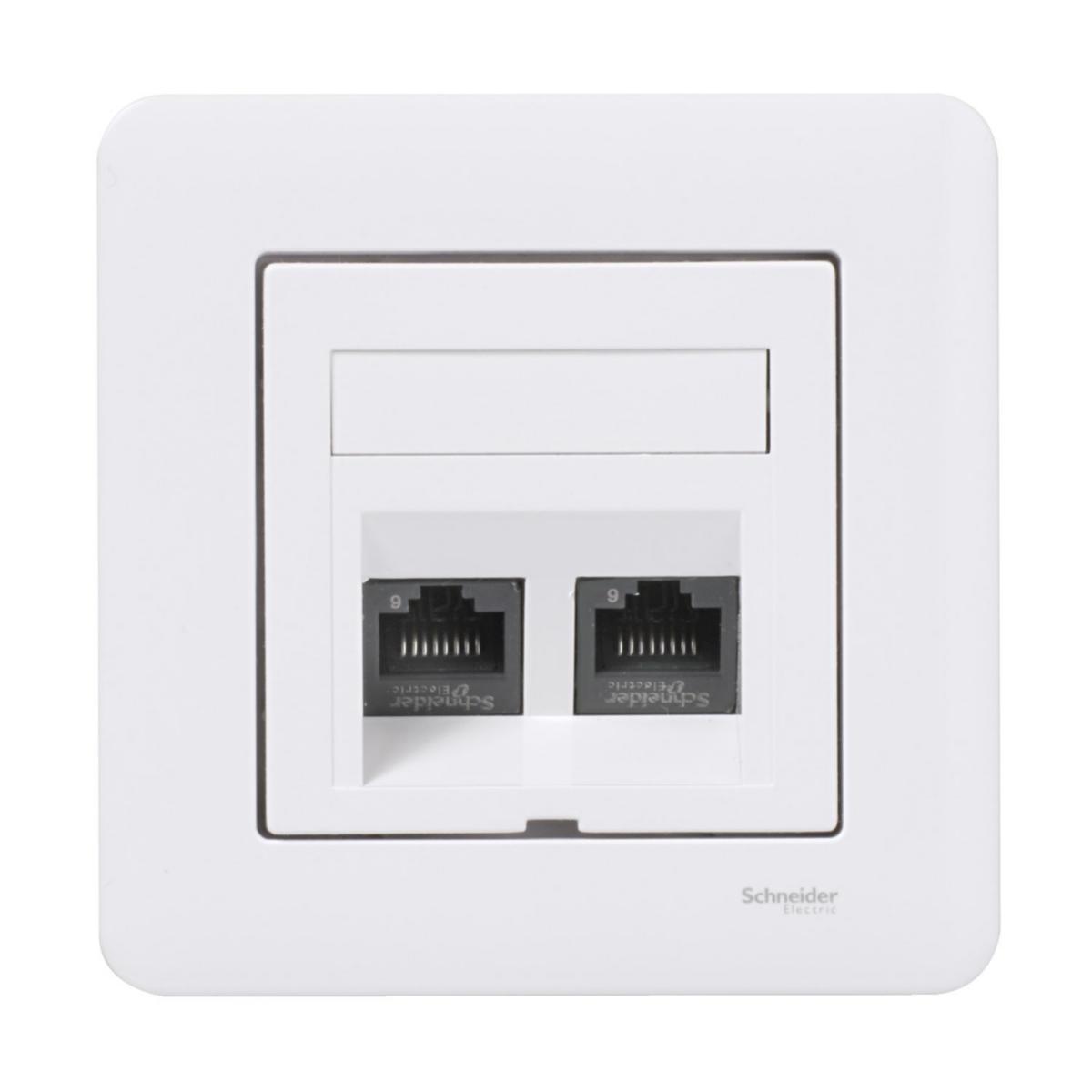 Exxact komplett datauttak leveres med 2 stk Actassi S-One konnektorer kat 6A STP og Primo ramme.