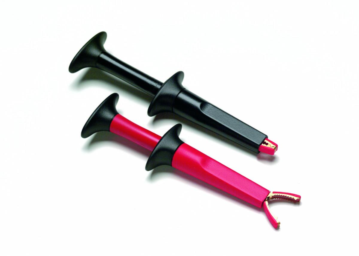 SureGrip™ tilbehør er utviklet for å gi glatte hender bedre grep om instrumentene. Gummiovertrukne overflater og kurver som ligger tett rundt fingrene gir brukerne et behagelig, pålitelig grep om verktøyet slik at de kan konsentrere seg om å utføre en nøyaktig måling. Ett par (rød, svart) små, isolerte, nikkelbelagte klemmer. Butt tupp, griper rundt skruehoder på opptil 9,5 mm. Anbefales for bruk med testledningene TL222 og TL224 CAT IV 600 V, CAT III 1000 V, 10 A-godkjenning, UL-godkjent. Ett års garanti. EN-IEC61010