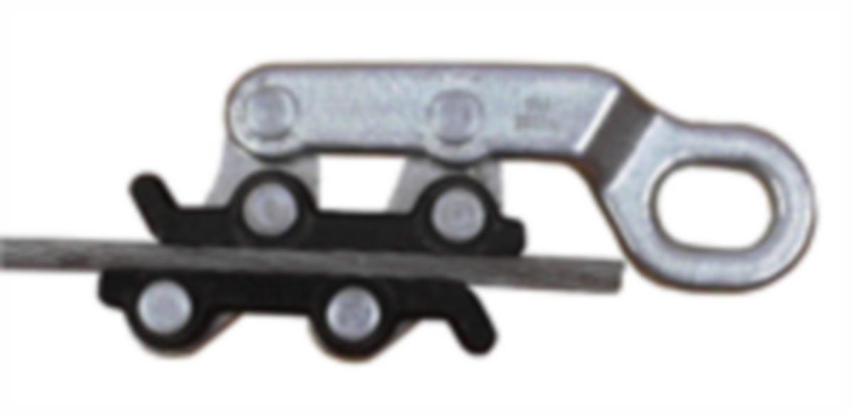 Generelt: For oppspenning og /eller fremdraging av ståltau, tråd og kabler av stål eller kobber. De riflete annleggsplatene, som ikke skader tauet, arbeider etter prinsippet at jo større kraft en drar med, jo hardere griper bakkene om tauet. Den innebygde fjærkostruksjonen medfører at bakkene alltid holder grepet rundt tauet, selv når den er ubelastet. Utførelse: Smidde ADVARSEL: Må ikke brukes til løft.