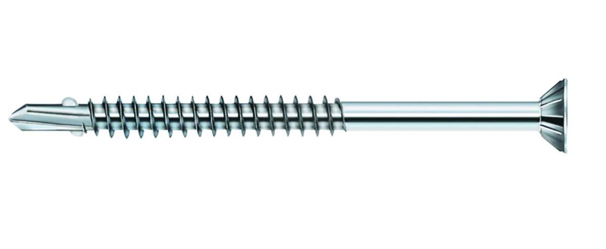 FPU-STB A2 vingeborskrue med borespiss. Rustfri A2, TX, delgjenge, DIN 7995, senkhode. Velegnet til montering av tre og platematerialer mot stål utendørs.