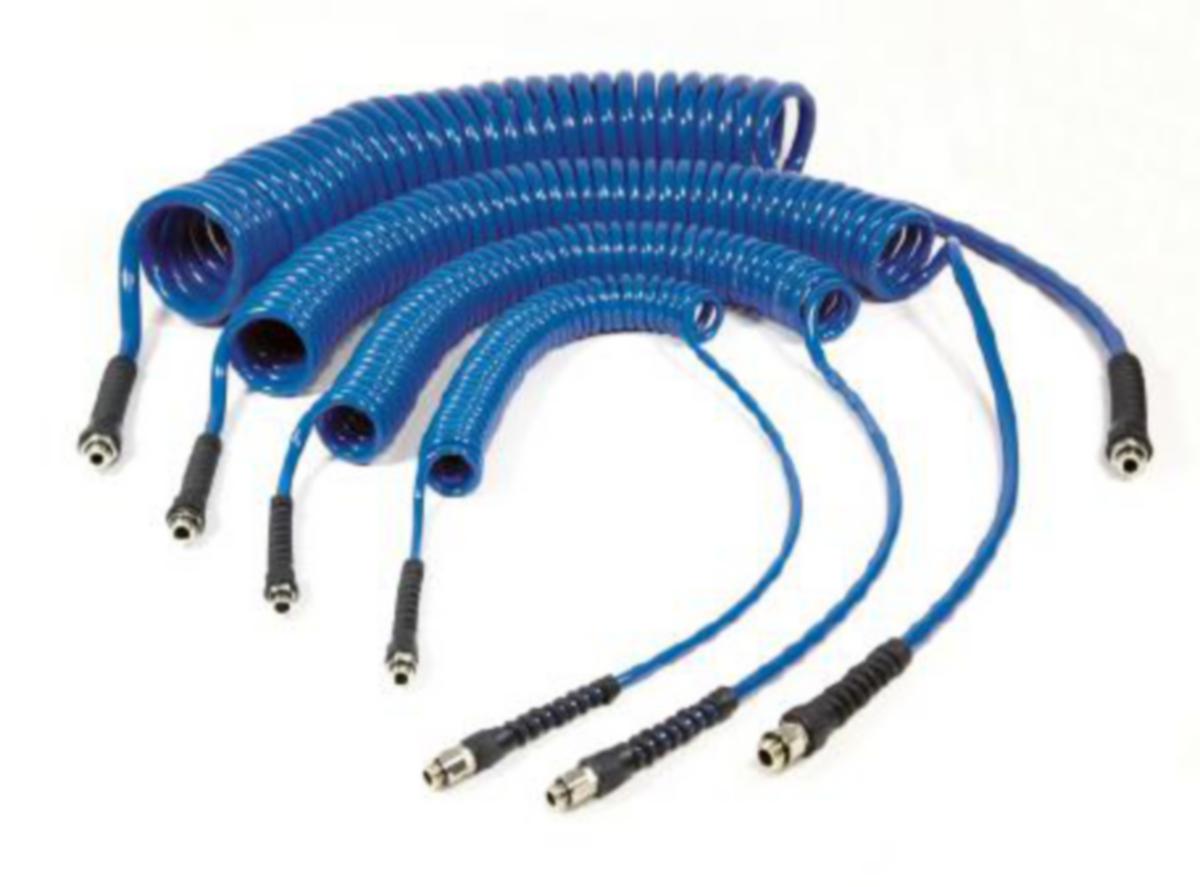 SPI elastisk spiral slange er ideell for luftverktøy som brukes i varierende avstand fra et fast luftuttak. Det er lett strukket og trekker umiddelbart når den slippes. Når den brukes med håndverktøy, dens selvlagring prinsippet sikrer at slangen holdes på gulvet og ut av veien for operatøren. SPI 1 og SPI 2 har kulelager svivler montert på lang slange side å tillater 360º rotasjon.