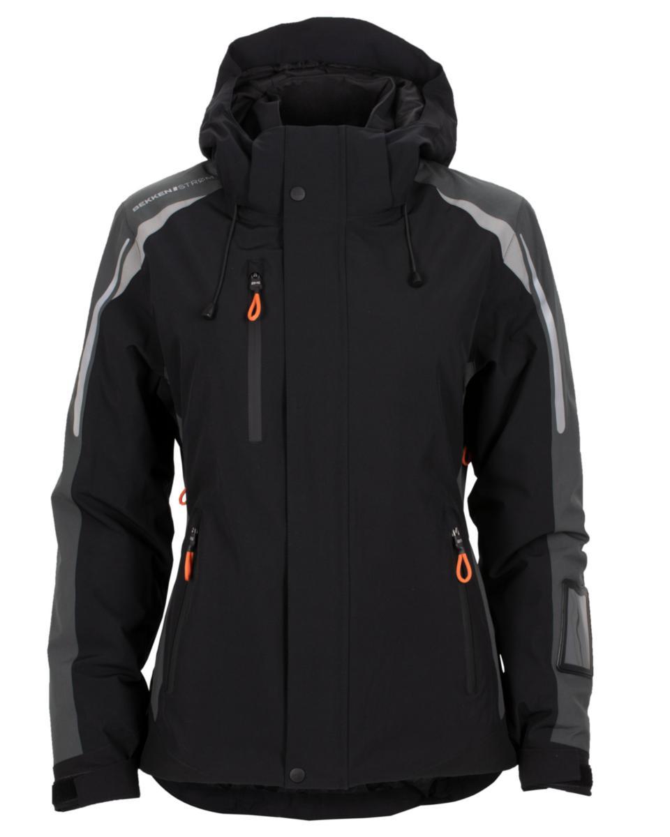 Vinterjakke dame designet for best mulig bevegelsesfrihet. 2-veis mekanisk stretch materiale. Pustende, vind- og vanntett. Helteipet konstruksjon. Fôret med 120/80 g/m2 polyester. Mesh panel i rygg for økt luftsirkulasjon. Forlenget rygg og formskåret ermer. Høy polstret krave med børstet polyester innside i nakke. Vannavvisende YKK® glidelås i front som går helt opp i kraven, stormklaff med trykknapper og hakebeskyttelse. Lufting under ermer med vannavvisende SBS glidelås med klaff. Avtakbar fôret hette, fult justerbar med elastisk strammesnor i åpning og bak. Forlommer med vannavisende SBS glidelås og børstet polyester innside. Høyre brystlomme med vannavvisende vertikal SBS glidelås. Innvendige brystlommer med vertikal SBS glidelås. Ermeavslutning med borrelåsregulering og innvendig elastisk mansjett. Elastisk strammesnor i linning. Refleksdetaljer. Materiale: 100% polyester, 160 g/m2. Standard: EN 343:2019 3,1, X, EN 342:2017 Icler ≥0,337m2 K/W(B), 3, X, brukt i kombinasjon med Vinterbukse allværs dame Majavatn.