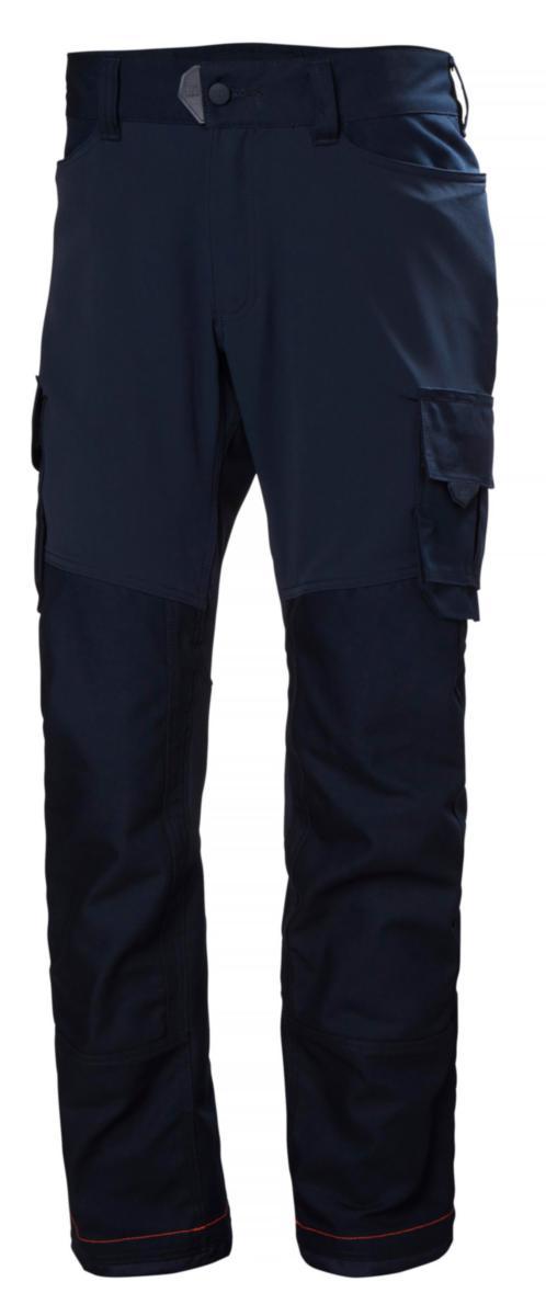 Servicebukse i moderne design. Formsydde ben. Optimal bevegelsesfrihet med paneler i 4-veis stretch. To-nålssøm i ben, lommer og skritt. Forsterket i skritt med kile. YKK® glidelås i gylf og plastbelagt knapp i linning. Brede beltehemper. To forlommer. Stor lårlomme på høyre ben med klaff med borrelås, delvis festet for optimal bevegelighet. Lårlomme på venstre ben med klaff med borrelås og to utenpåliggende lommer med ekspansjonsfold, innvendig hempe til ID-kortholder, delvis festet for optimal bevegelighet. To baklommer, den høyre med klaff og borrelås, begge delvis festet for optimal bevegelighet. Forsterket benavslutning i Cordura®. Nedfellbar fold på 5 cm i benavslutning for ekstra lengde.