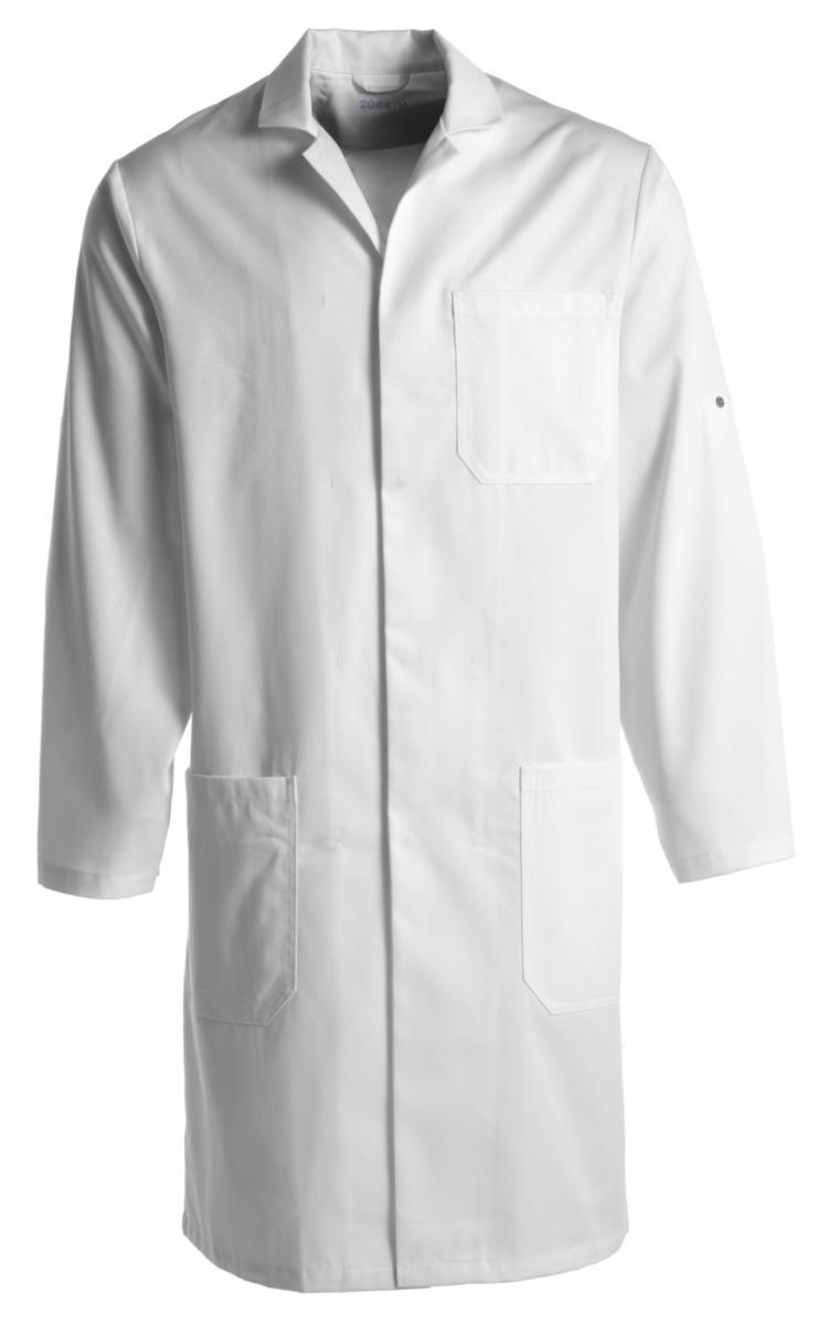Skjulte trykknapper. Skjult trykknapplukking i front. Nakkestropp. Justerbar ermelengde.