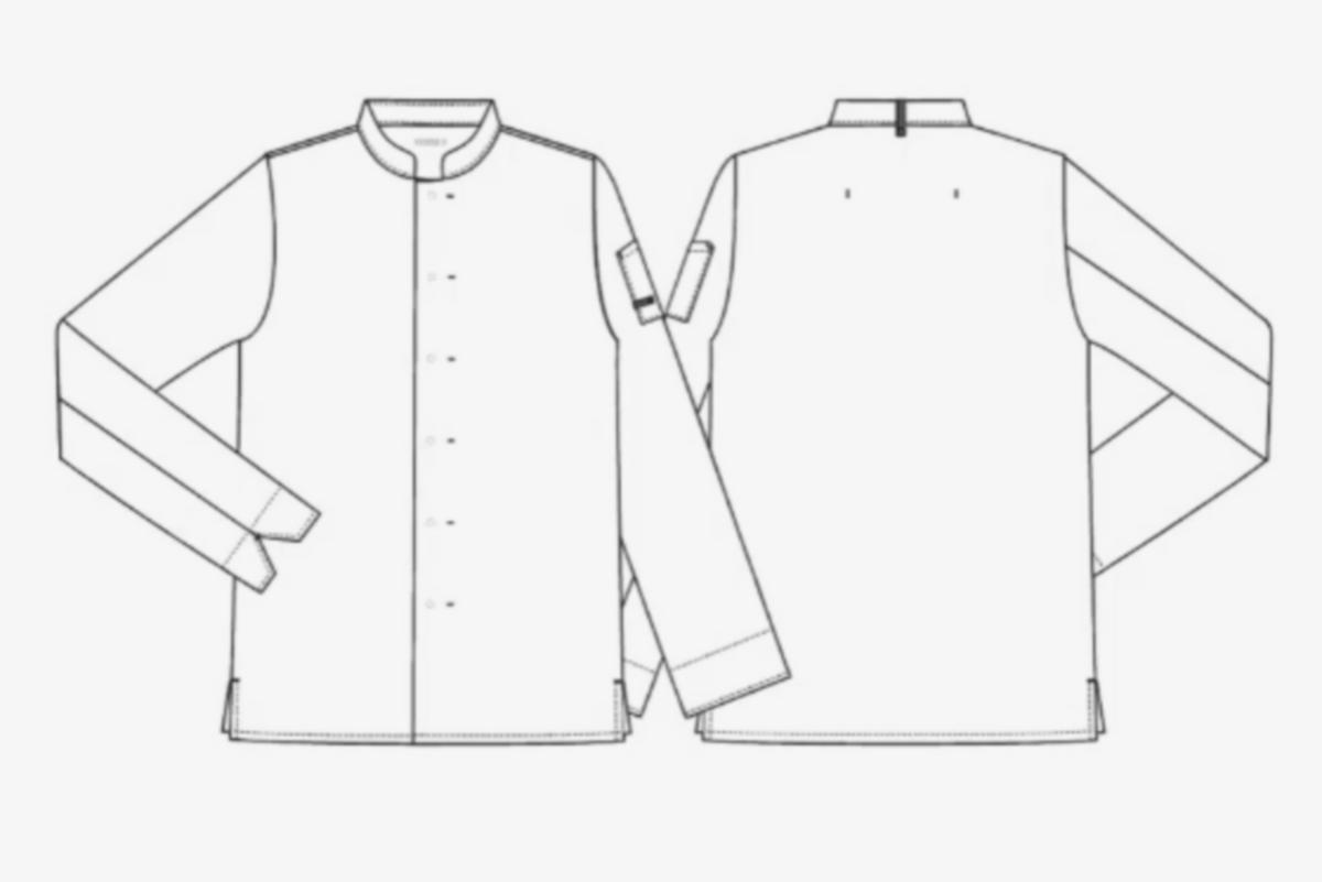 Meny kokkejakke med optimert unisex passfom - A snitt. Kokkejakke med lange ermer, skjulte trykknapper, pennelomme på venstre erme, nakkestropp til smekkforkle og splitt i siden.