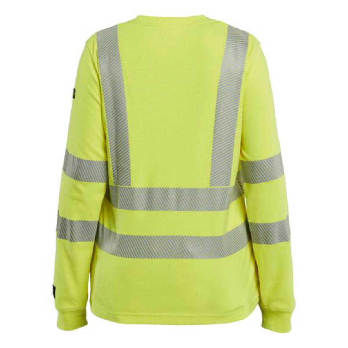 Langermet varsel-T-skjorte med flammebeskyttelse og påsveisede refleksbånd. Dametilpasset passform, rund hals samt forsterkede sømmer i nakke og skuldre.