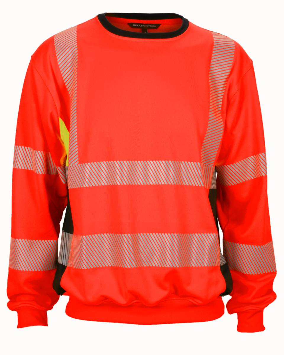 Fluoriserende genser med refleks på ermer, skuldre og mage.