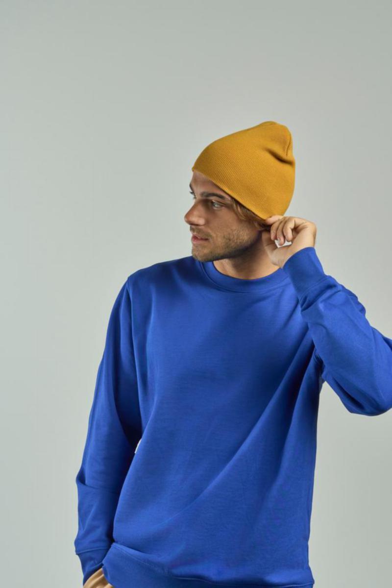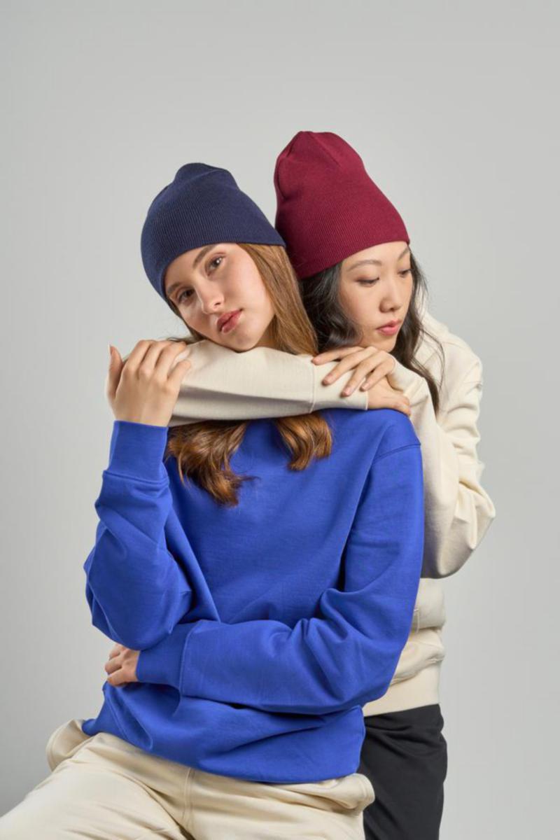Komfortabel og allergivennlig lue i 100% økologisk bomullsgarn. Rundstrikket med smale fine masker. GOTS-sertifisert GOTS-11099.