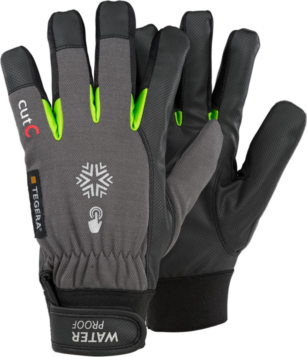 Vanntett vinterhanske med skjærebeskyttelse. PU håndflate og stretch polyester håndbak. Smidig, slitesterk og godt grep. Topp passform og god fingerfølsomhet. Heltrukken pekefinger. Forsterkede fingertupper. Helfôret med børstet polyester. Touchscreen. Innsydd strikk over håndledd og borrelåsregulering rundt håndledd. Hanske for monteringsarbeid og diverse håndtering i kaldt og vått miljø med fare for kuttskade.