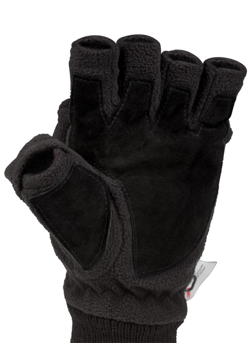 En praktisk hanske som holder hendene varme og har åpning for fingrene når du trenger dem, og en hette å ta på når du ikke gjør det. Laget av varm 40g Thinsulate™ med lærforsterket håndflate og tommel for utmerket holdbarhet. Den har en varm og fleksibel mansjett for en behagelig passform og for å holde skitt unna. Den er lett å ta av og på hetten. Brukes til alt vinterarbeid der det er behov for en fingerløs hanske.