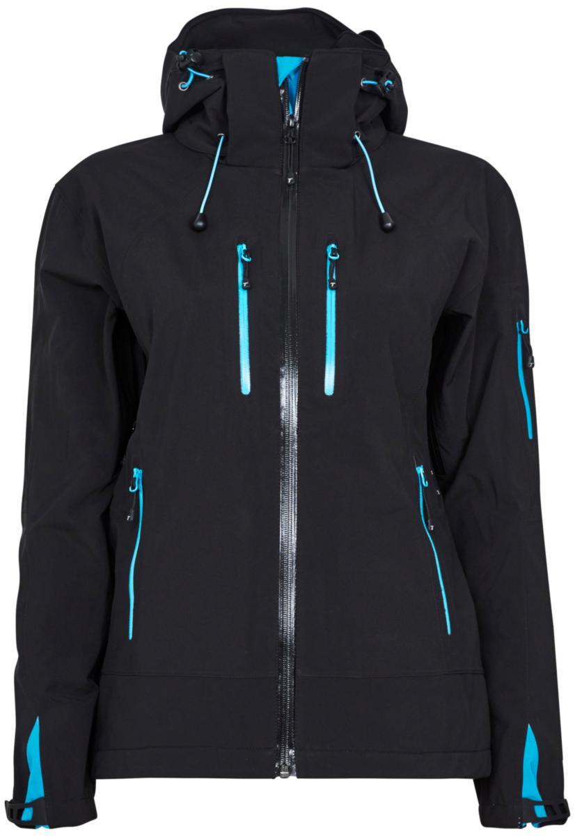 Fasongsydd damemodell. En høyteknisk skalljakke som tåler det meste. 10000mm vannsøyle/9000 g/m2 pusteevne. Jakken er laget i 3-lags sveiset vindtett, vanntett og 2-veis elastisk stoff med teipede sømmer og vannavvisende hovedglidelås, samt YKK vannavvisende glidelåser på samtlige utvendige lommer (5 stk.). 2-Veis YKK vannavvisende glidelåser under ermene gir deg mulighet for mekanisk lufting ved høy aktivitet. Avtagbar og justerbar hette, snøring i linning, 2 innvendige lommer. Advanta™ vanntett og pustende membran. Materiale: 100% polyester/spandex med pustende membran, microfleece.