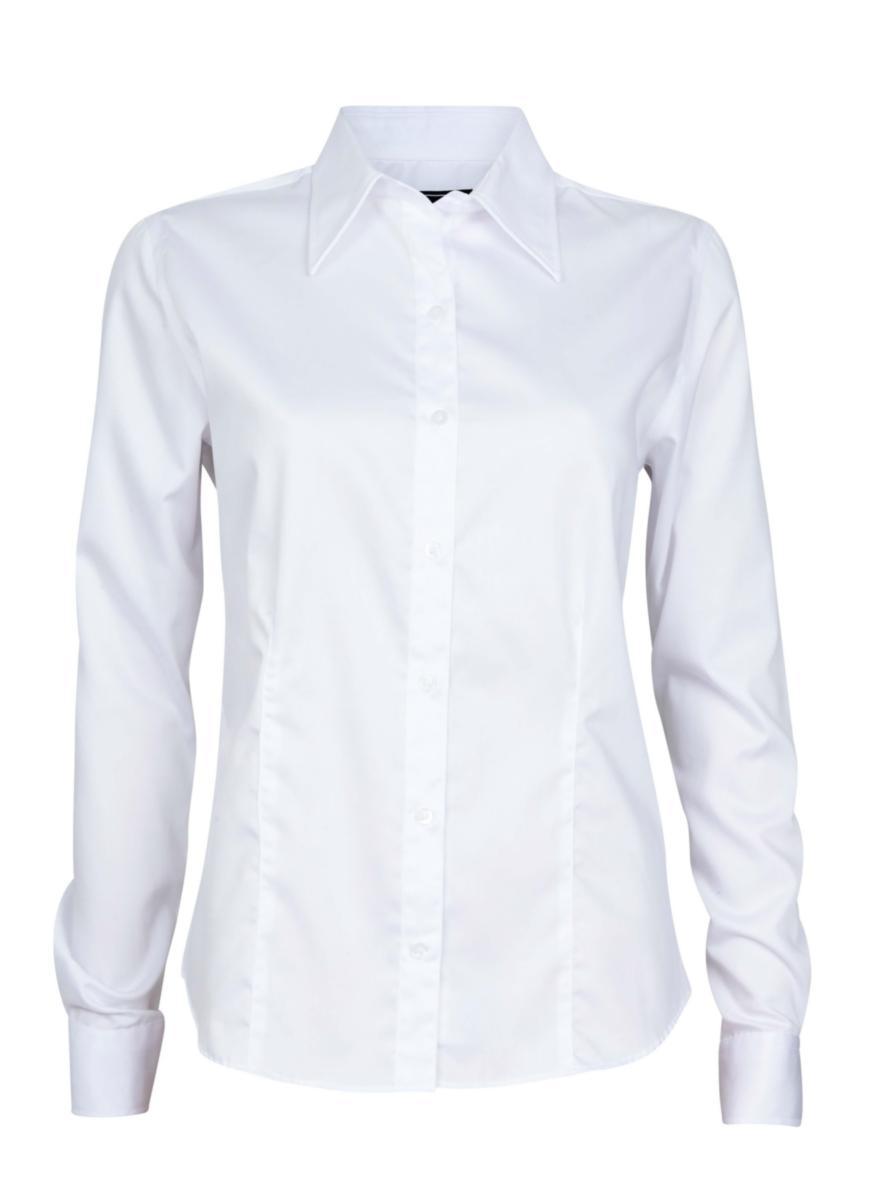 En lekker og tidsriktig bomullsskjorte til dame. Sammensetningen av bomull og elastan gjør dette til en svært behagelig skjorte, mens satengveven gir en glatt og fin overflate med fin glans. Dette er en lettstelt skjorte som trenger minimalt med stryking – den er nesten strykefri.
