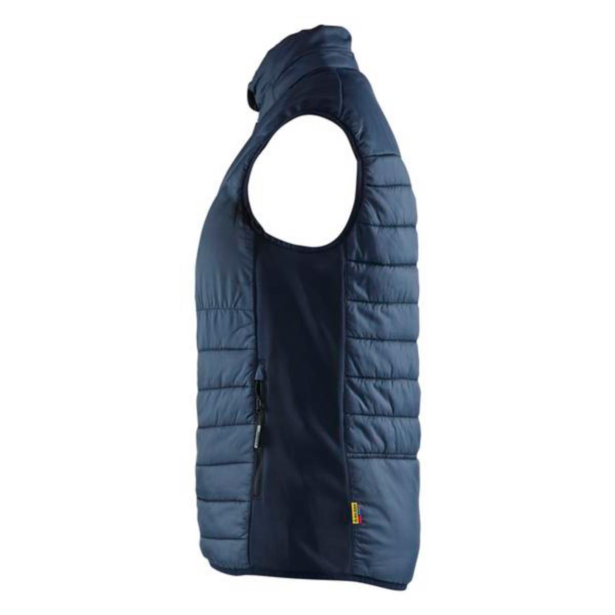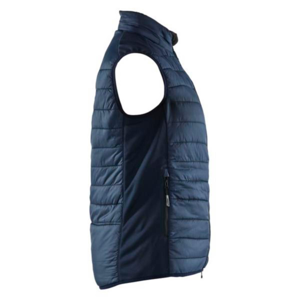 Vattert vest med damepassform fra Blåkläders UNITE kolleksjon med fôr i front og rygg. Side og skulderområdet på vesten er i strikket polyester, noe som gir den optimal bevegelighet og komfort. Vesten har gode profileringsmuligheter. Kommer i herremodell 3863.