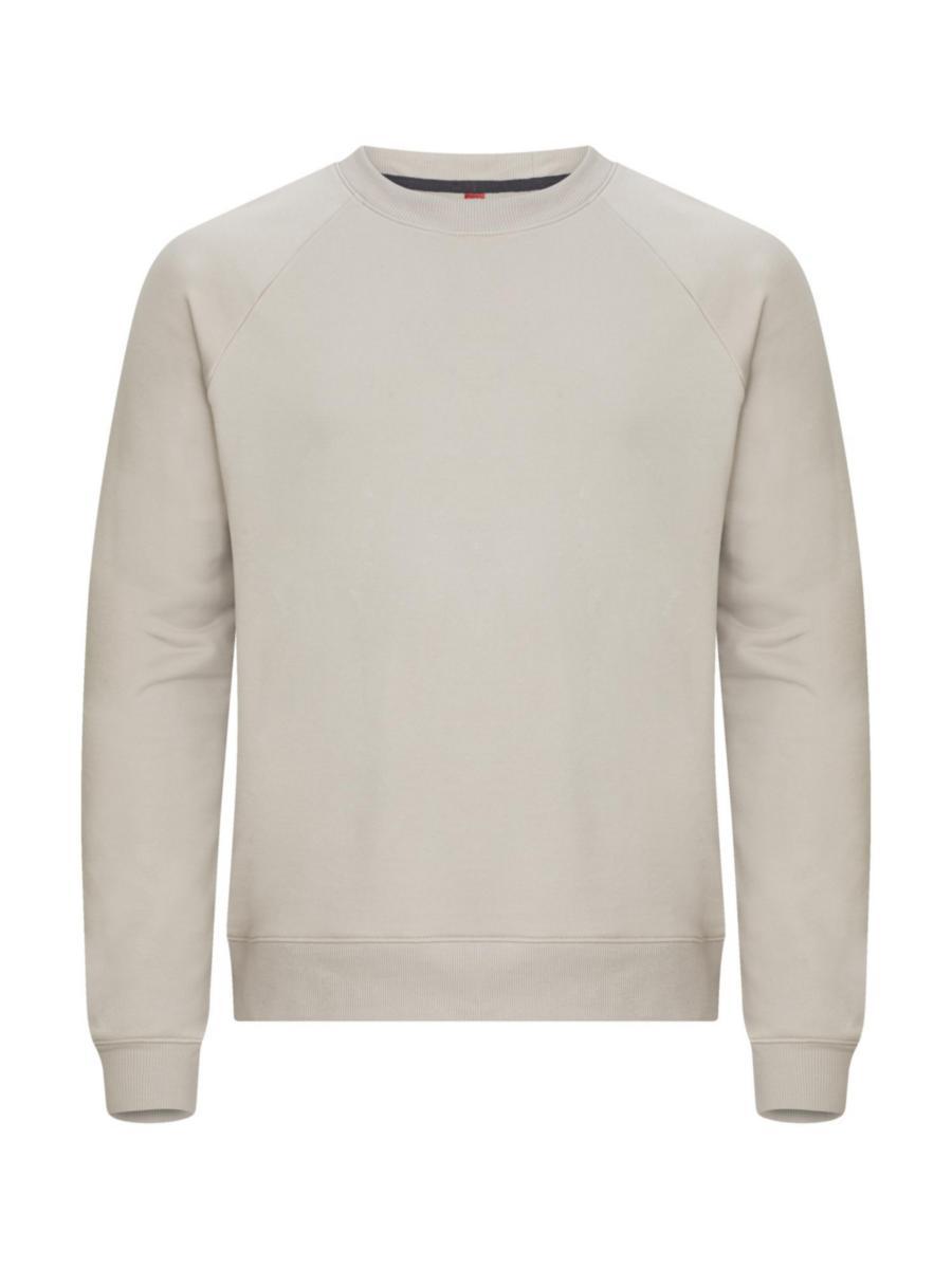 En unisex sweatshirt med rund hals i French Terry kvalitet, laget av en blanding av bomull og resirkulert polyester. Genseren har raglanermer og elastisk 2x2 ribb med enkle sømmer i halsen, nederst på ermet og i nederkant. Inkluderer kontrastfarget twillbånd i halsen og en etikett som er enkel å ta av for rebranding. Genseren har mykt, stabilisert stoff med anti-pilling finish, godt egnet for intensiv vask.