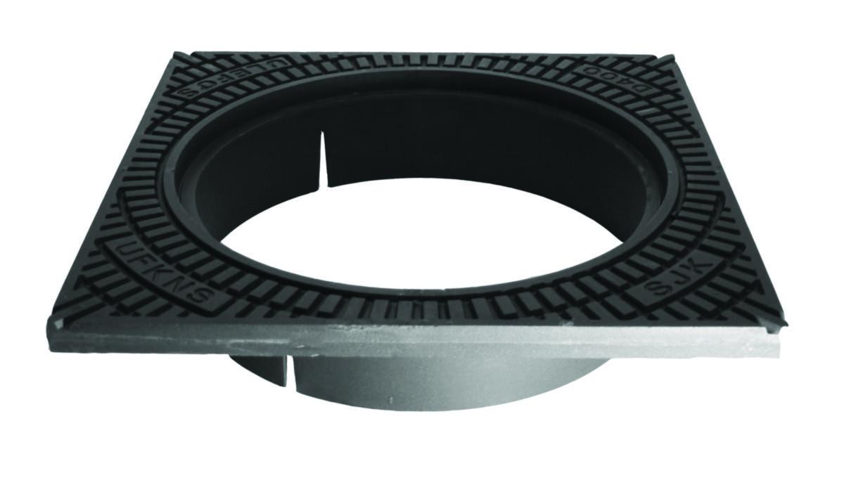Flytende firkantramme i seigjern med kontrollåpninger i rammeskjørt, for sten- og hellebelagte områder.
