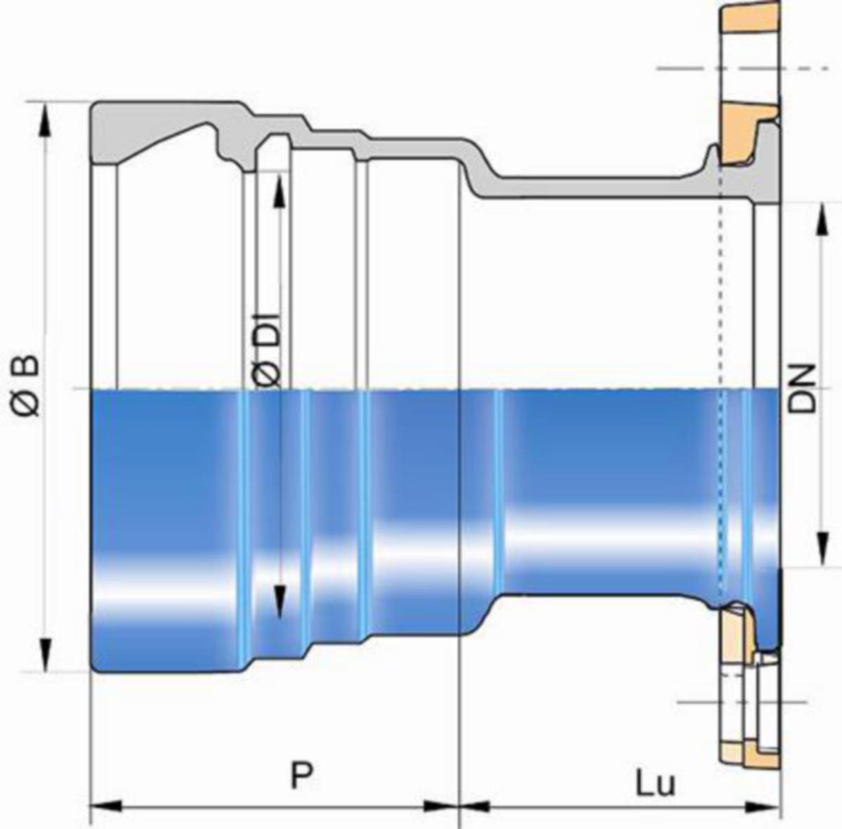 DN 150 2-kamret Flensemuffe Universal Tyton blå epoxy
