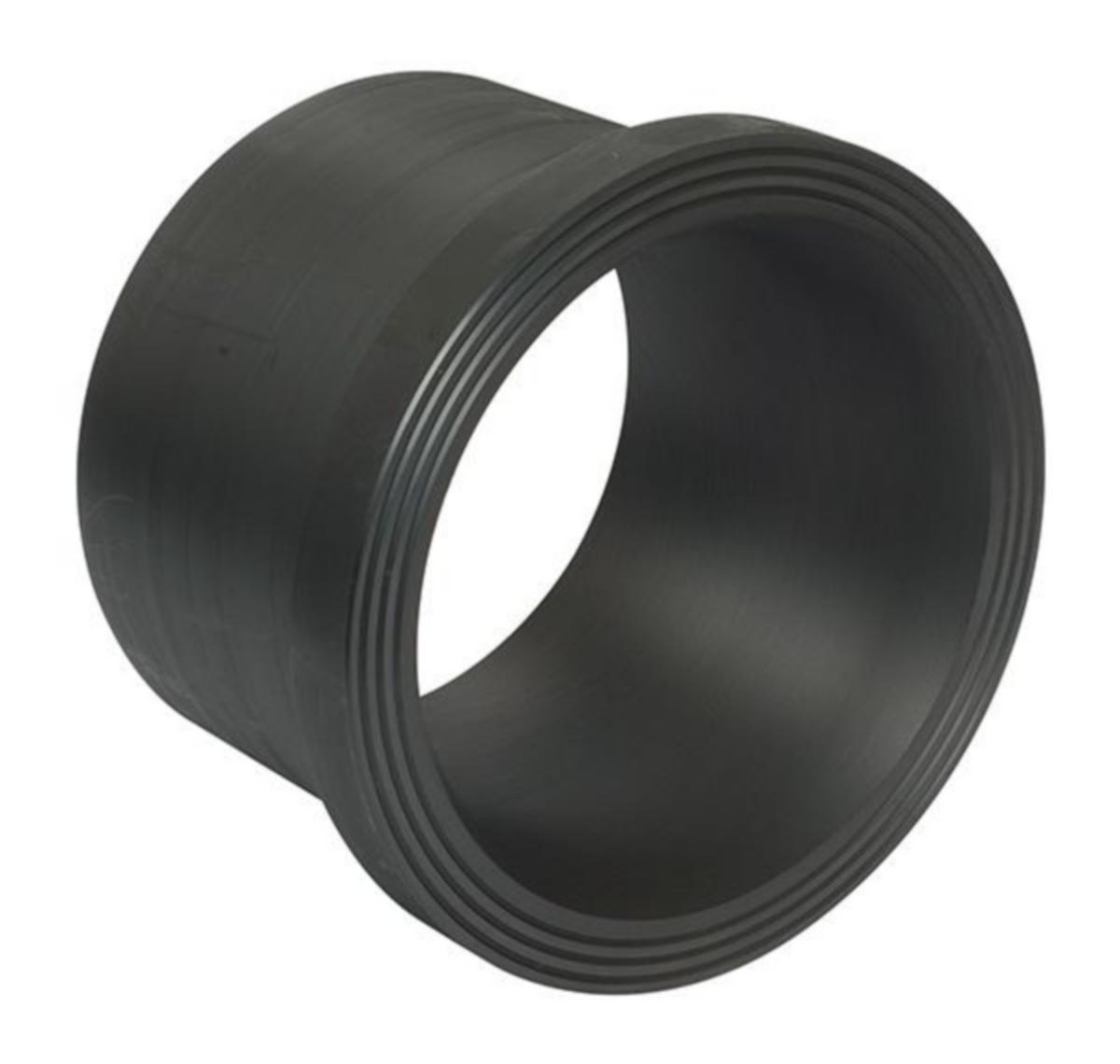 Sort PE100-RC krage, lang ende. Til vannapplikasjoner. HDPE-krager gjør det mulig for vannverk, ingeniører og entreprenører å produsere fullsveiste rørnettverk. Alle PE-kragene er produsert i svart polyetylen. Produksjonskvaliteten, påliteligheten og fleksibiliteten til PE-delene gir den sikkerheten som er nødvendig ved sveising av polyetylen.