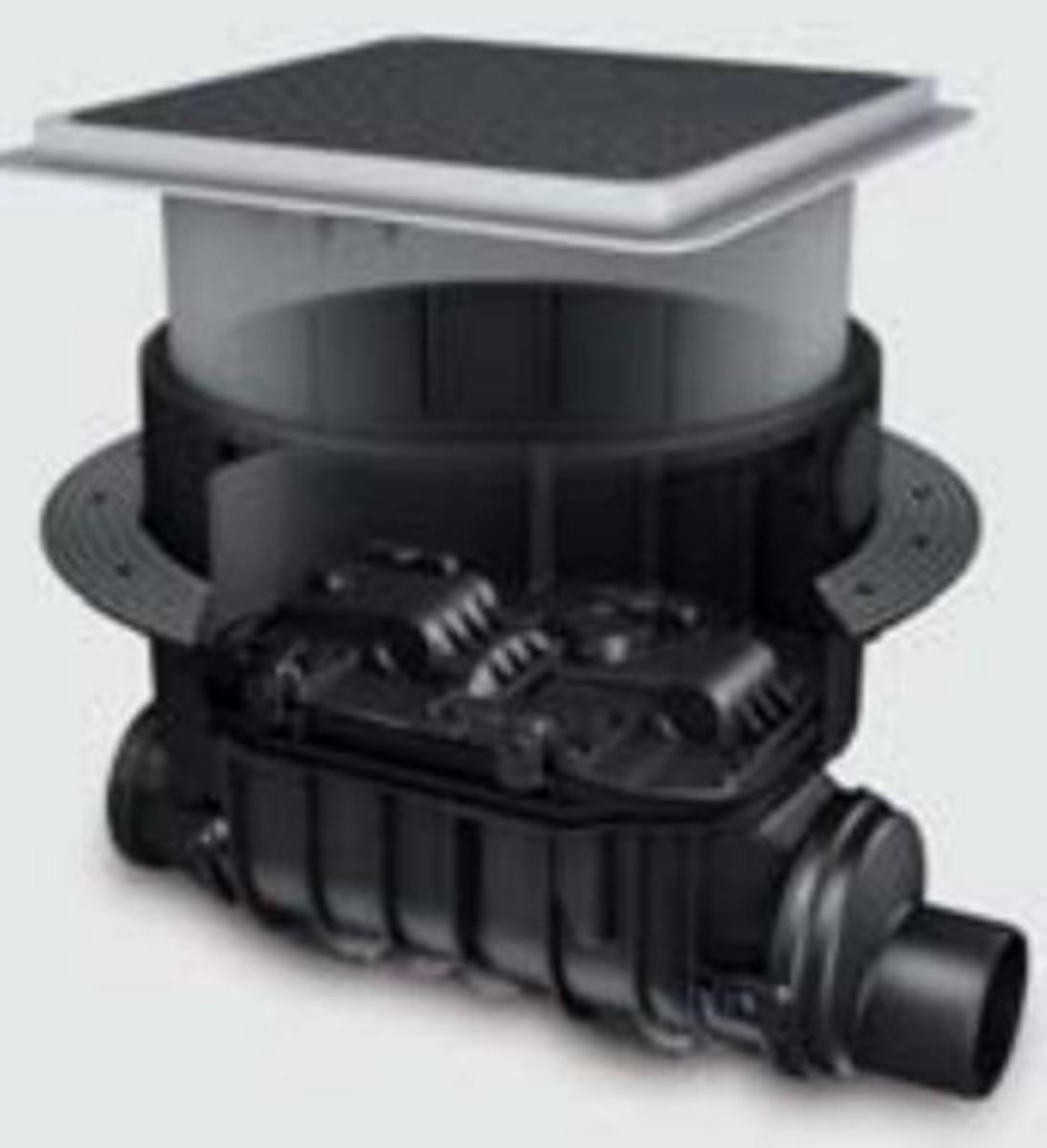 Produsert i polymer. For installasjon i gulv/betonggulv. Installasjonsdybde D: 486 – 640 mm Installasjonsareal: 750 x 750 mm Med teleskopisk overdel for høydejustering. Med vanntett lokk klasse A15. Lokket finnes i to utførelser: -Svart -Klargjort for flislegging Stakerør uten tilbakeslagsklaffer. Kan oppgraderes til Staufix SWA, Staufix FKA og Pumpfix F.
