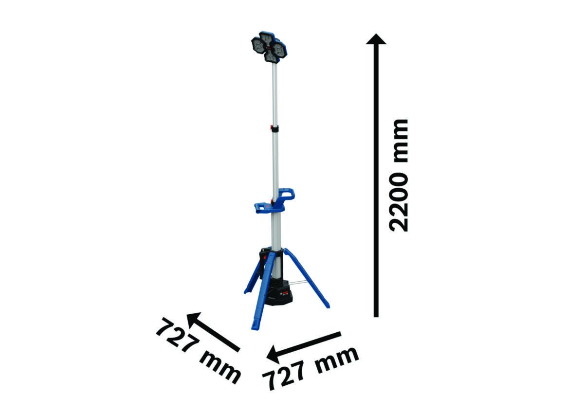 PRO GLT18V-5000 sørger for svært godt lys på arbeidsområdet. med 3 lysstyrkenivåer, de 80 lysdiodene kan justeres opptil 5000 lumen. Det flerveis lyshodet lar deg orientere de tre lyshodene for å kaste lys i alle retninger, mens enkeltknappskontrollen gjør det enkelt å bruke. Tårnet kan forlenges til 2,2 m for å gi lys til arbeid over hodehøyde eller minimere skygger og redusere blending. Dette arbeidslyset settes opp på under 15 sekunder og lyser opp alle mørke kroker. Lystårnet tar liten plass når det er slått sammen, og med en vekt på 6,2 kg er det svært enkelt å transportere og oppbevare. IP 54-klassifisert.