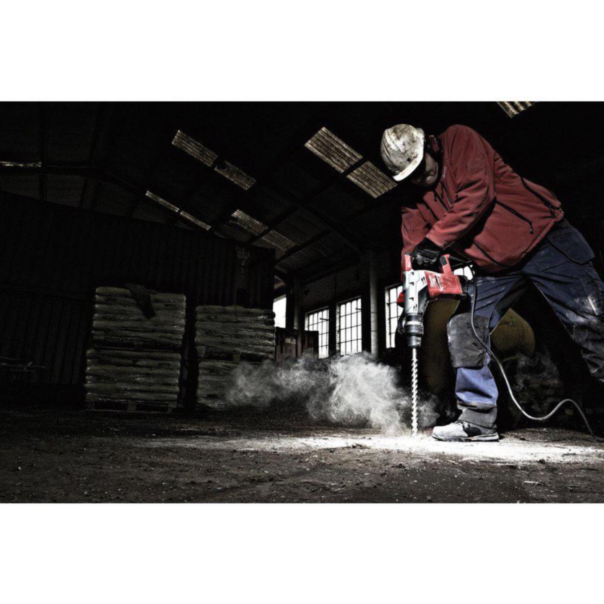 5 kg kombihammer med 1100 W motor. Softgrep på begge håndtak. Rotasjonsstopp og 12-trinns innstilling av meiselposisjon. Luke for enkelt bytte av kullbørster. Slagenergi ved boring 9 J. 550 o/min. 3600 slag/min. Bordiameter med SDS-Max bor/kjernebor 40/105 mm. Vekt 6,1 kg. 4 m kabel, sidehåndtak, smøremiddel, koffert.