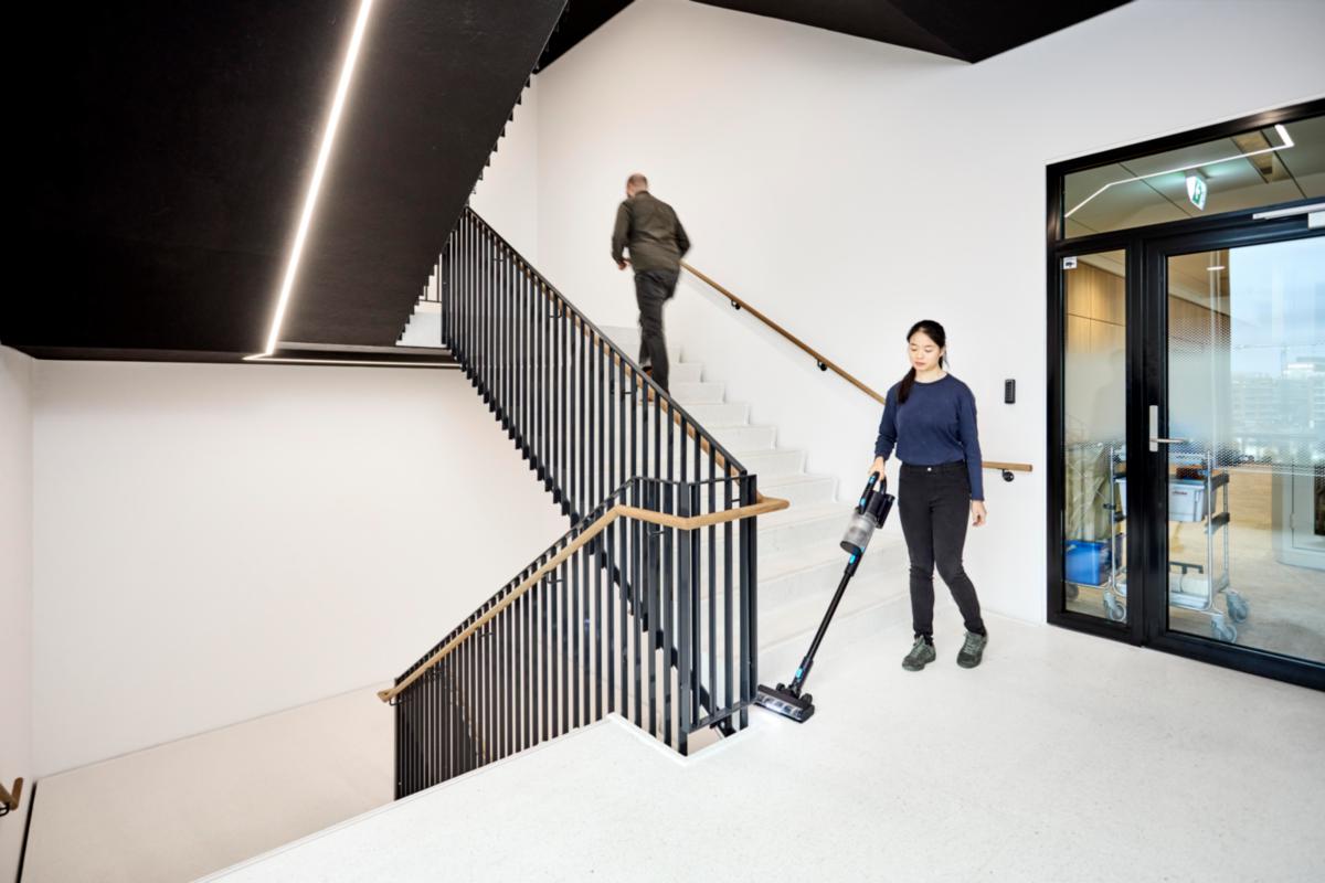VU200, en batteridrevet støvsuger som gjør det lettvint og raskt å rengjøre uten avbrudd i arbeidsflyten.