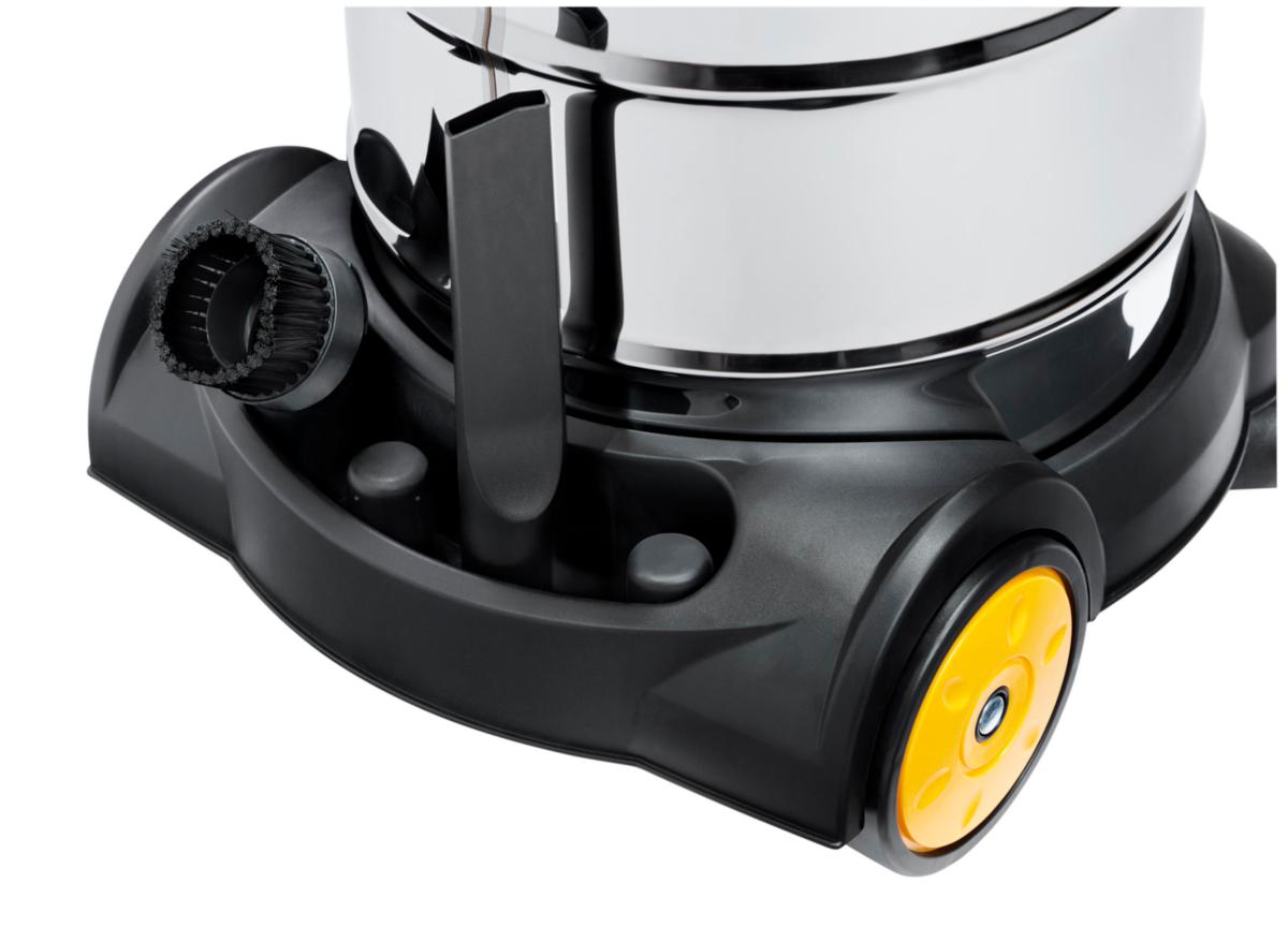 Grovstøvsuger for smuss og støv, enten det er vått eller tørt. Robust beholder i stål som rommer 30 liter. Med filterrengjøringsfunksjon og automatisk start/stop for elektriske verktøy. Støvsugeren har et robust bærehåndtak og praktisk oppbevaring for tilbehør og ledning. Vaskbart filter som enkelt kan vaskes, tørkes og deretter brukes igjen. Ved tørrsuging anbefales bruk av støvsugerpose. Dette gir enklere håndtering og forlengelse av filterets levetid. Blåsefunksjon.