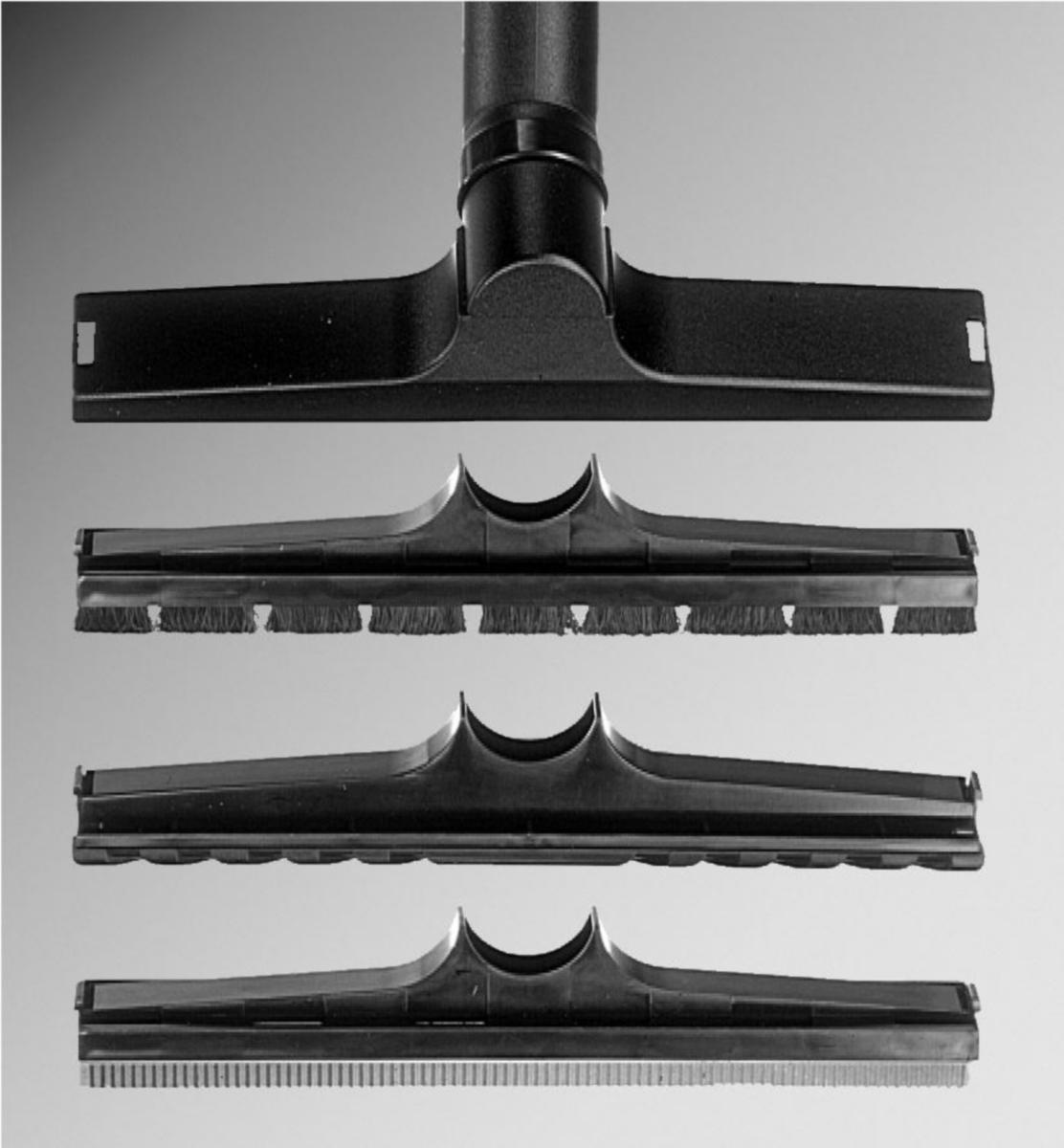 Universaldysen fås med to eller tre innsatser for tørr og våt støvsuging. Innsatsene har en gummileppe for vann, en børste for glatte overflater og et plasthode for tepper. Den passer til standard støvsugerslanger på Bosch-støvsugere.