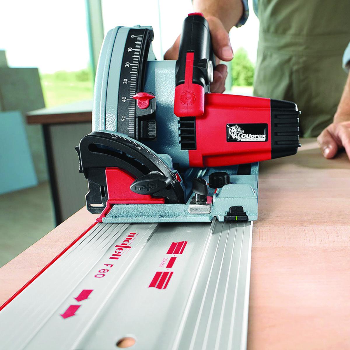 For å oppnå et presist og rent snitt tilbyr MAFELL føringsskinnesystemet F, som kan brukes til en rekke maskintyper. Gummileppen fungerer både som en kant på skinnen og som beskyttelse mot riper. For å oppnå perfekte resultater bør du «skjære» den til riktig størrelse før du foretar det første kuttet. Det anodiserte glidebelegget på oversiden av skinnen gir deg god håndtering og reduserer motstanden når du skyver sirkelsagen. Leveringsomfanget inkluderer også en profil for enden av skinnen, som forhindrer at kabelen og støvsugerslangen setter seg fast. Bredden på skinnen er utformet slik at hele maskinens bunnplate glir på skinnen når du sager.