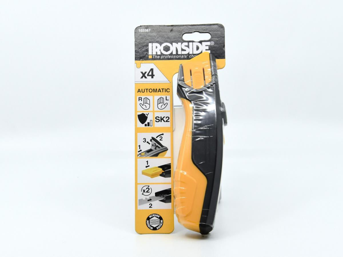 Ironside Sikkerhetskniv Auto er en robust og trygg brytebladkniv utviklet spesielt for arbeidsmiljøer der sikkerhet er avgjørende. Den har automatisk bladinntrekk, som gjør at bladet trekkes tilbake så snart det slutter å være i kontakt med materialet – en viktig funksjon for å minimere risiko for kuttskader. Kniven er laget i metall og har et ergonomisk gummigrep som gir godt hold selv ved presisjonsarbeid. Den kan også låses for situasjoner hvor kontrollert kutting kreves. Leveres med ett 18 mm blad.