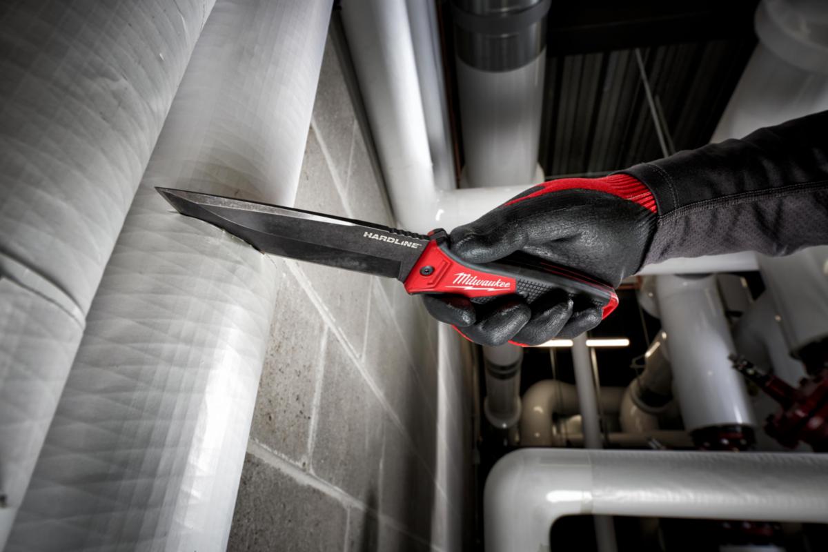 AUS-8 stålblad på 5 tommer (127 mm) gjør at bladet holder seg skarpt lenger, slik at brukeren ikke trenger å slipe kniven så ofte. Tange i metall gir kniven holdbarhet ved krevende kutt. Støpt håndtak for et sterkt og sikkert grep, samt stroppfeste. Slitesterk slire med mange bæremuligheter gir rask tilgang.