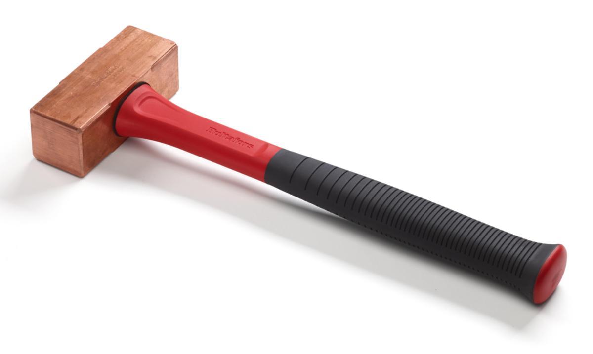 Ren stangkobber. Skaft i glassfiber. Kobberhodet er skånsomt mot arbeidsstykket og gnistfritt. Glassfiberskaftet gir verktøyet lang og sikker levetid. Vekt uten skaft.