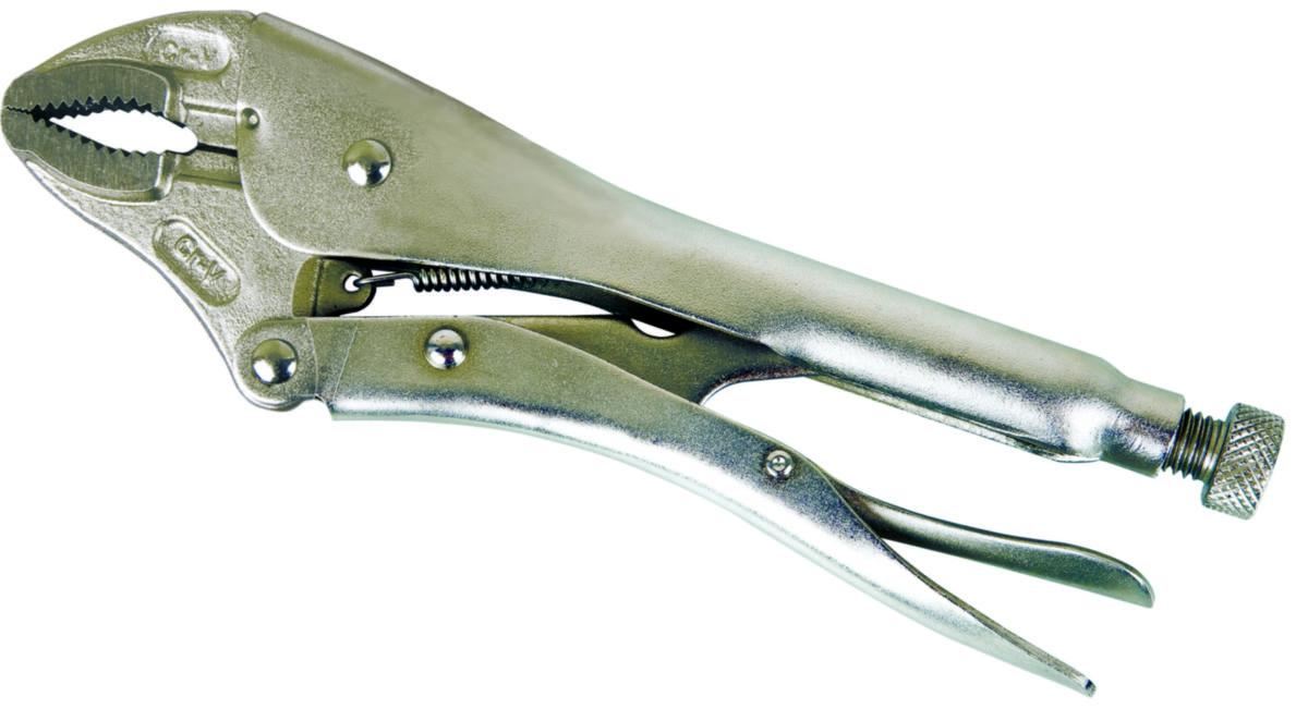 Liten og praktisk låsetang i nikkelplettert CrMo-stål utstyrt med avbiter for wire osv. Konkave gripeflater og klassisk låsemekanisme for beste grep. Total lengde: 113 mm. Gripeområde: 0 – 37 mm.