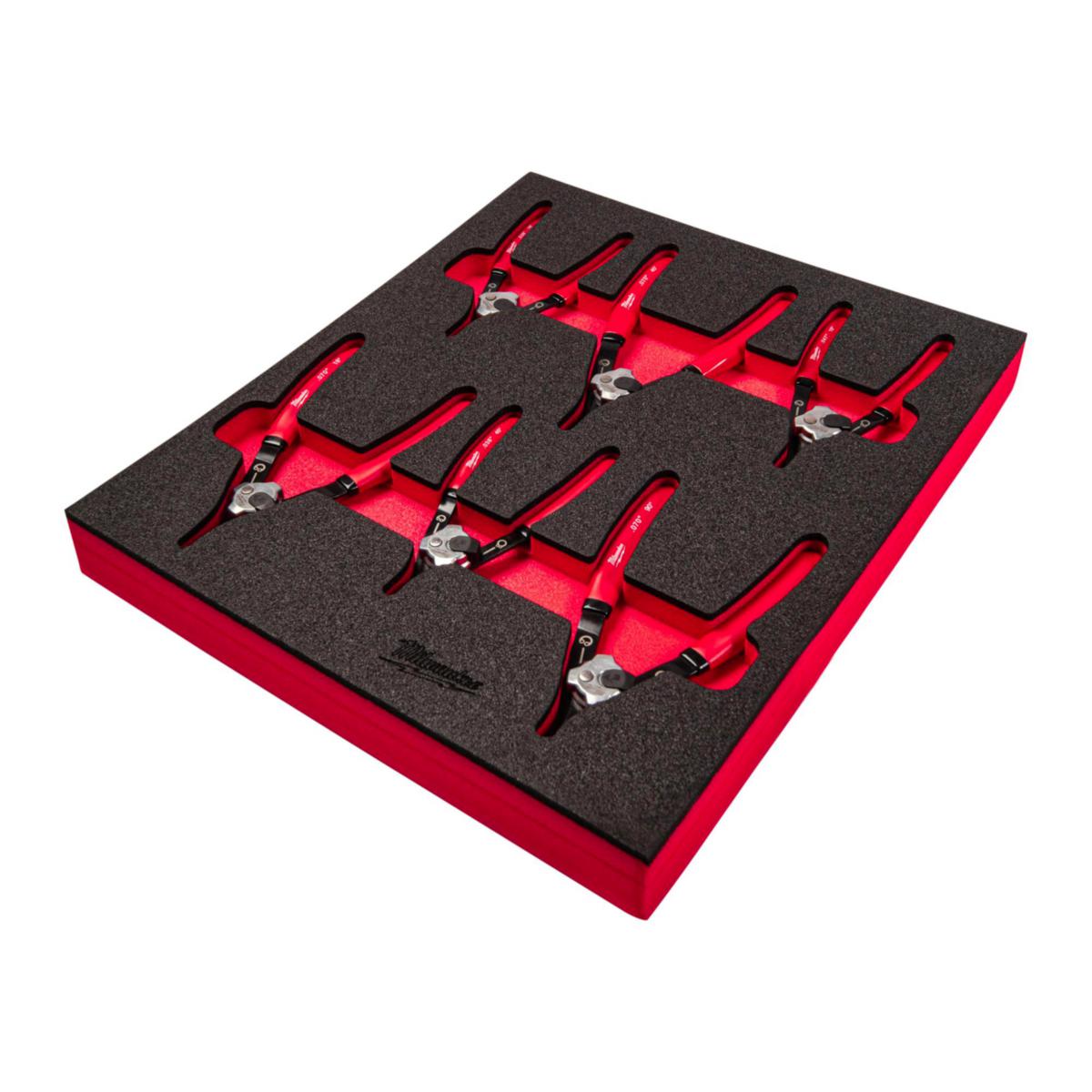 Enklere og raskere intern-ekstern omstilling med antiskli-rillet dreiehjul. Omstillbart dreiehjul i metall for bedre motstand mot slitasje. Glidesikre grep med dobbeltdyppede håndtak. Oppbevares i skuminnlegg. Låseringtang liten - rett - 0.9 mm spiss (4932492487), Liten låseringtang - rett - 45° - 0.9 mm spiss (4932492488), Medium låseringtang - rett - 1.2 mm spiss (4932492490), Stor låseringtang - rett - 1.8 mm spiss (4932492493), Stor låseringtang 45° - 1.8 mm spiss (4932492494), Stor låseringtang 90° - 1.8 mm (4932492495). Skuminnsats til verktøyvogn.